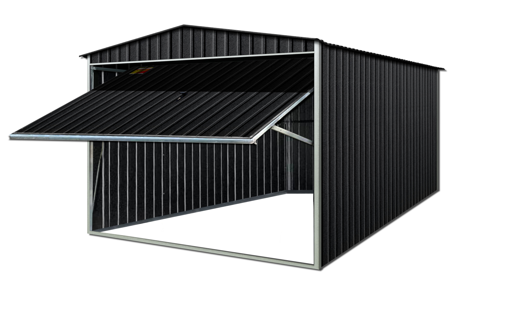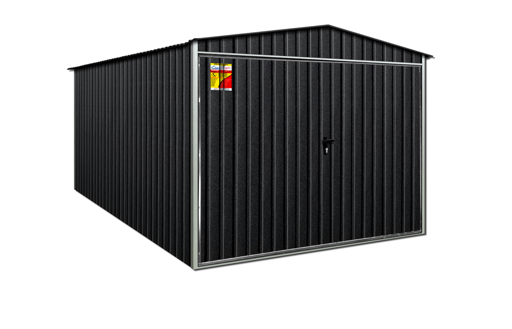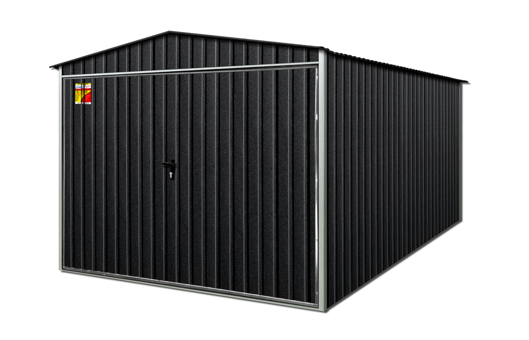 GRAFITOWY GARAŻ BLASZANY 2X3 – DWUSPADOWY DACH, BRAMA UCHYLNA, KONSTRUKCJA OCYNKOWANA