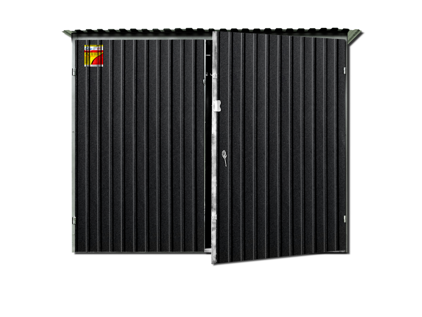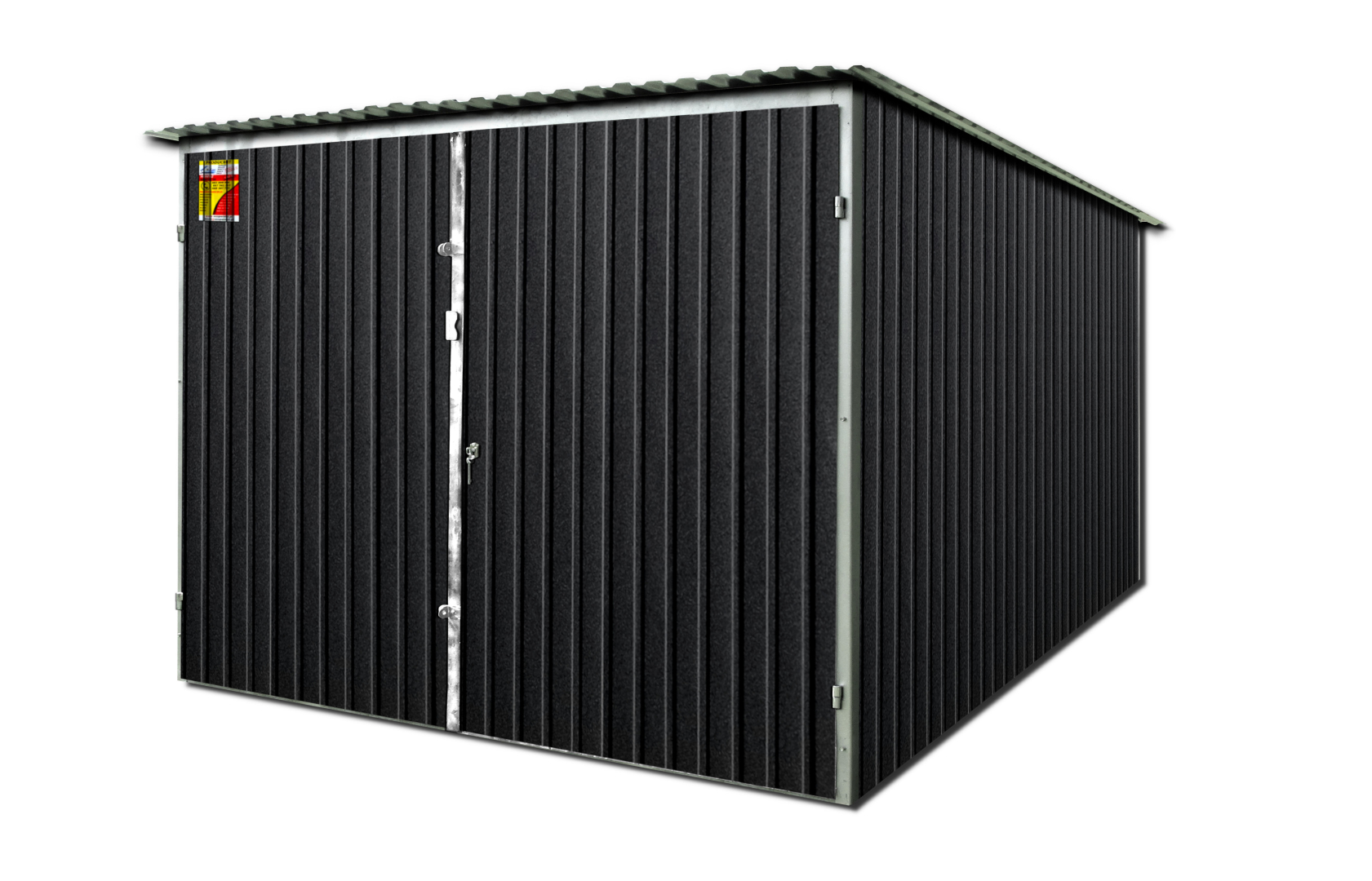 Garaż blaszany 5X7 GRAFIT MAT – Dwuspadowy dach, brama dwuskrzydłowa