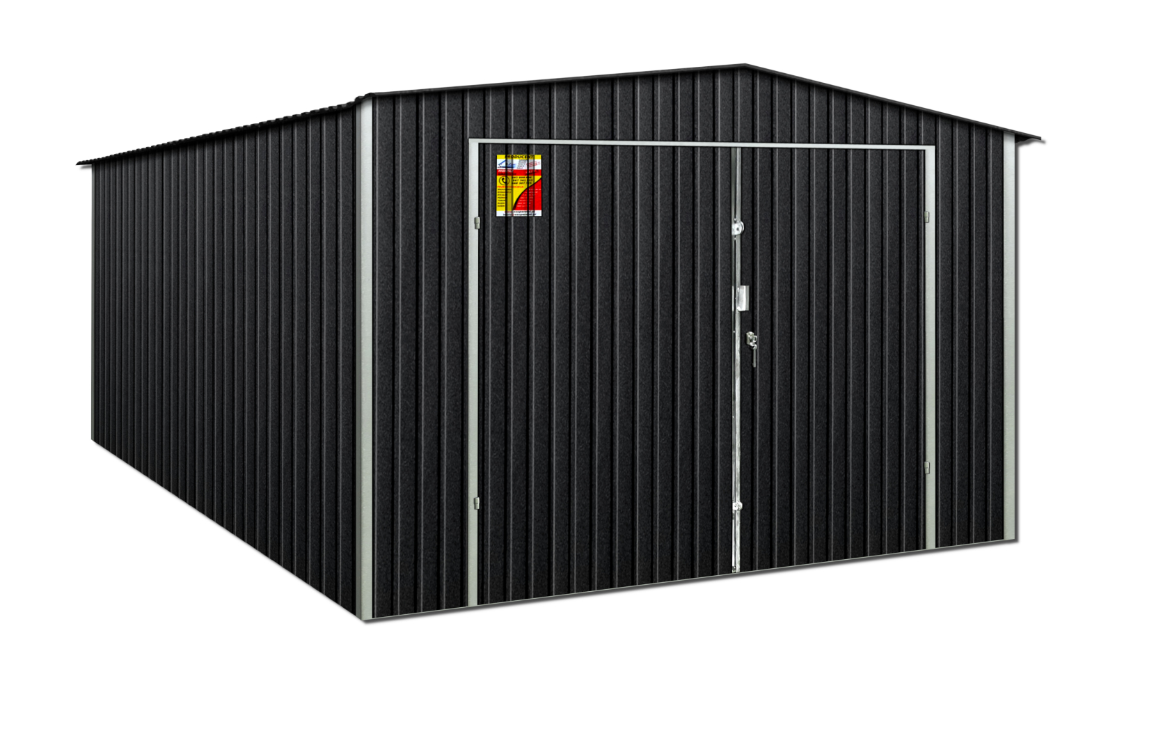 Garaż blaszany 3X7 GRAFIT MAT – Dwuspadowy dach, brama dwuskrzydłowa