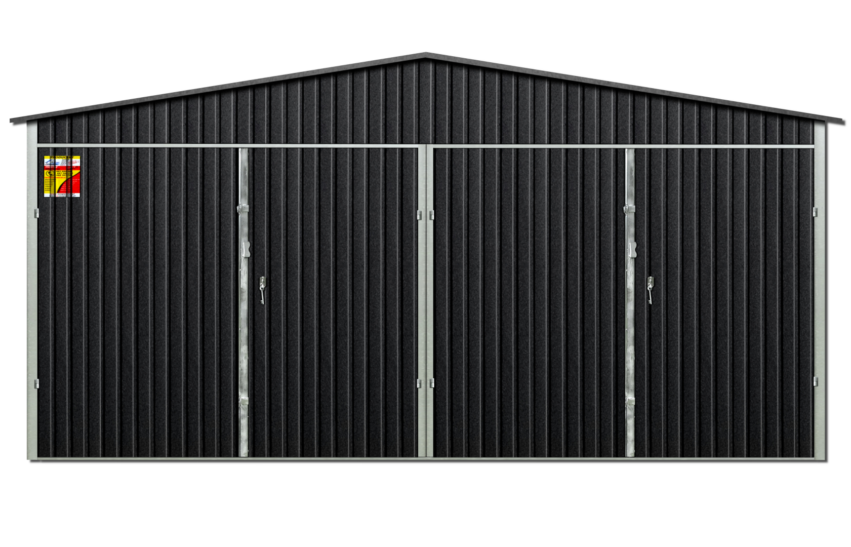 Garaż blaszany 6X6 GRAFIT MAT – Spad dachu do tyłu, bramy dwuskrzydłowe
