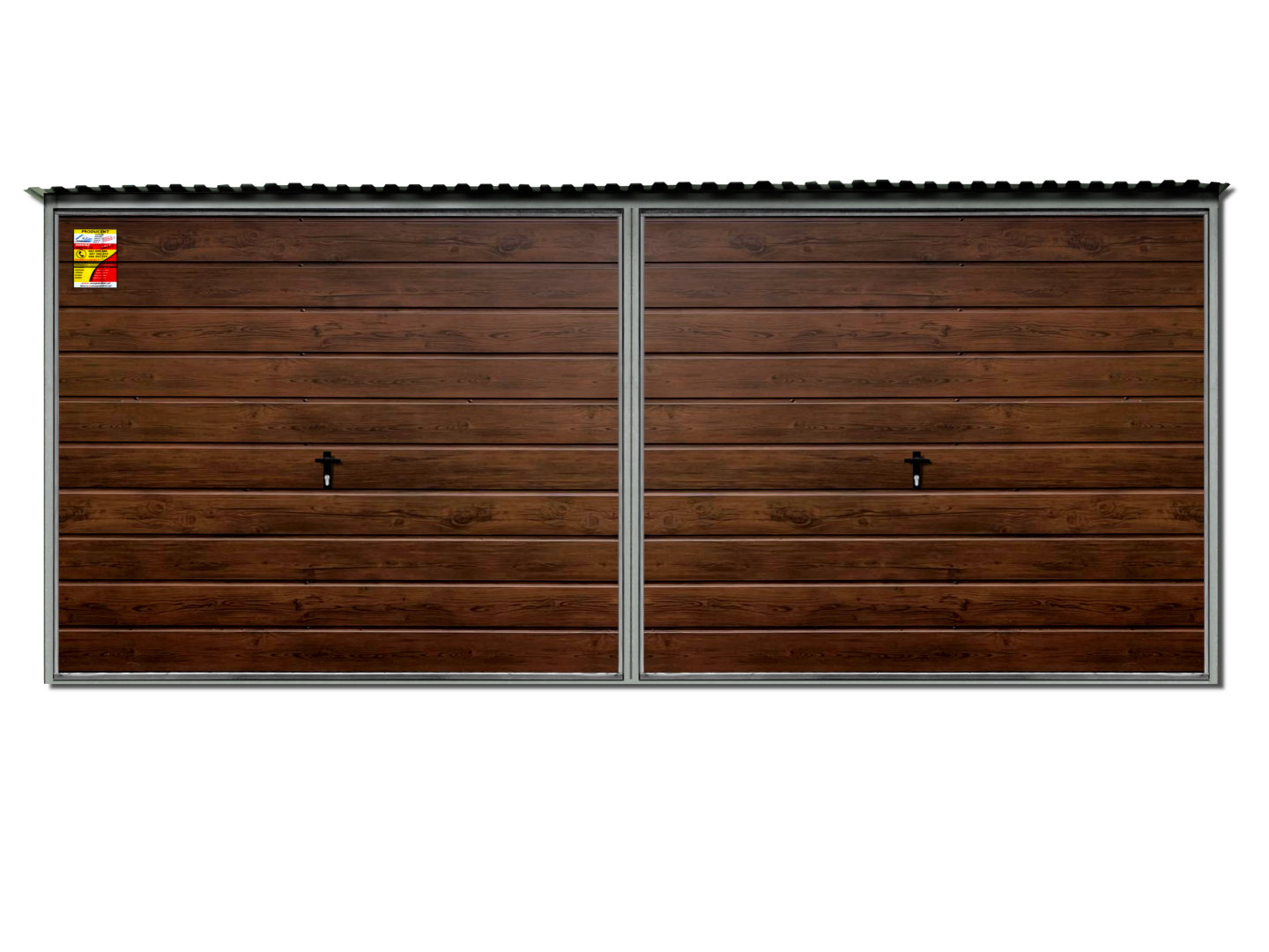 Garaż blaszany 3X7 LUX drewnopodobny – Dwuspadowy dach, brama uchylna