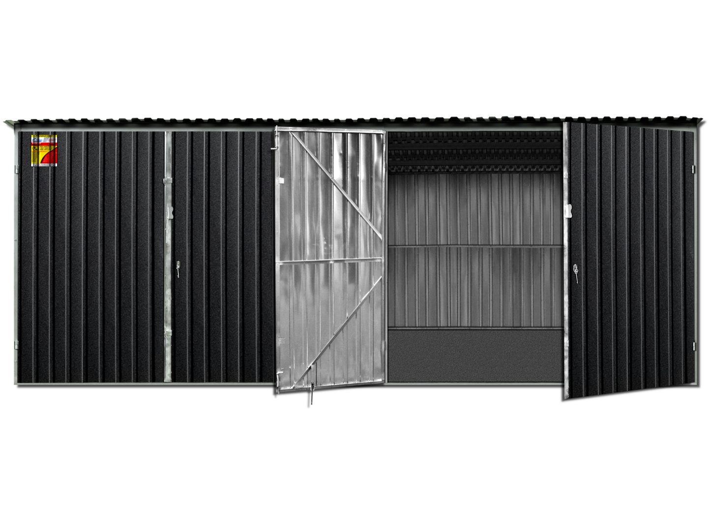 Garaż blaszany 7X6 GRAFIT MAT – Dwuspadowy dach, bramy uchylne