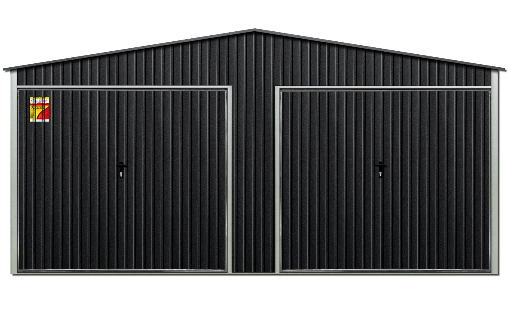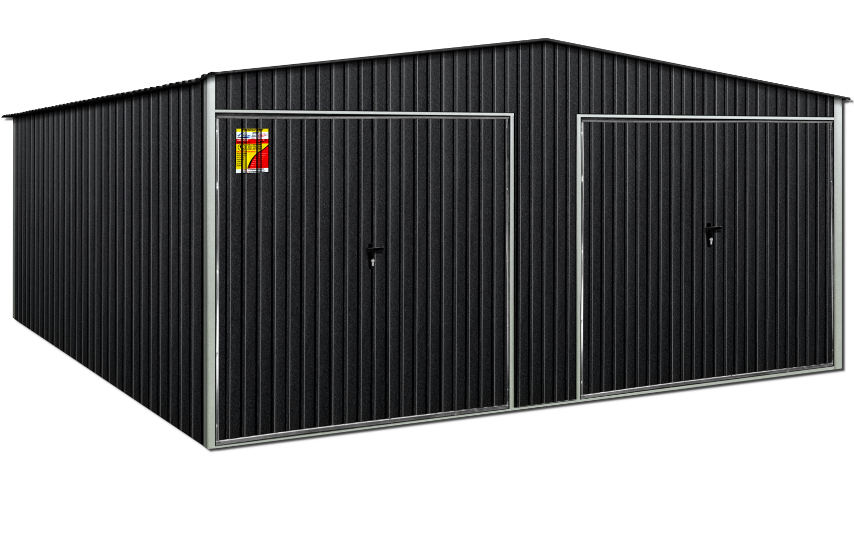 GRAFITOWY GARAŻ BLASZANY 7X7 – DWUSPADOWY DACH, BRAMY UCHYLNE, KONSTRUKCJA OCYNKOWANA