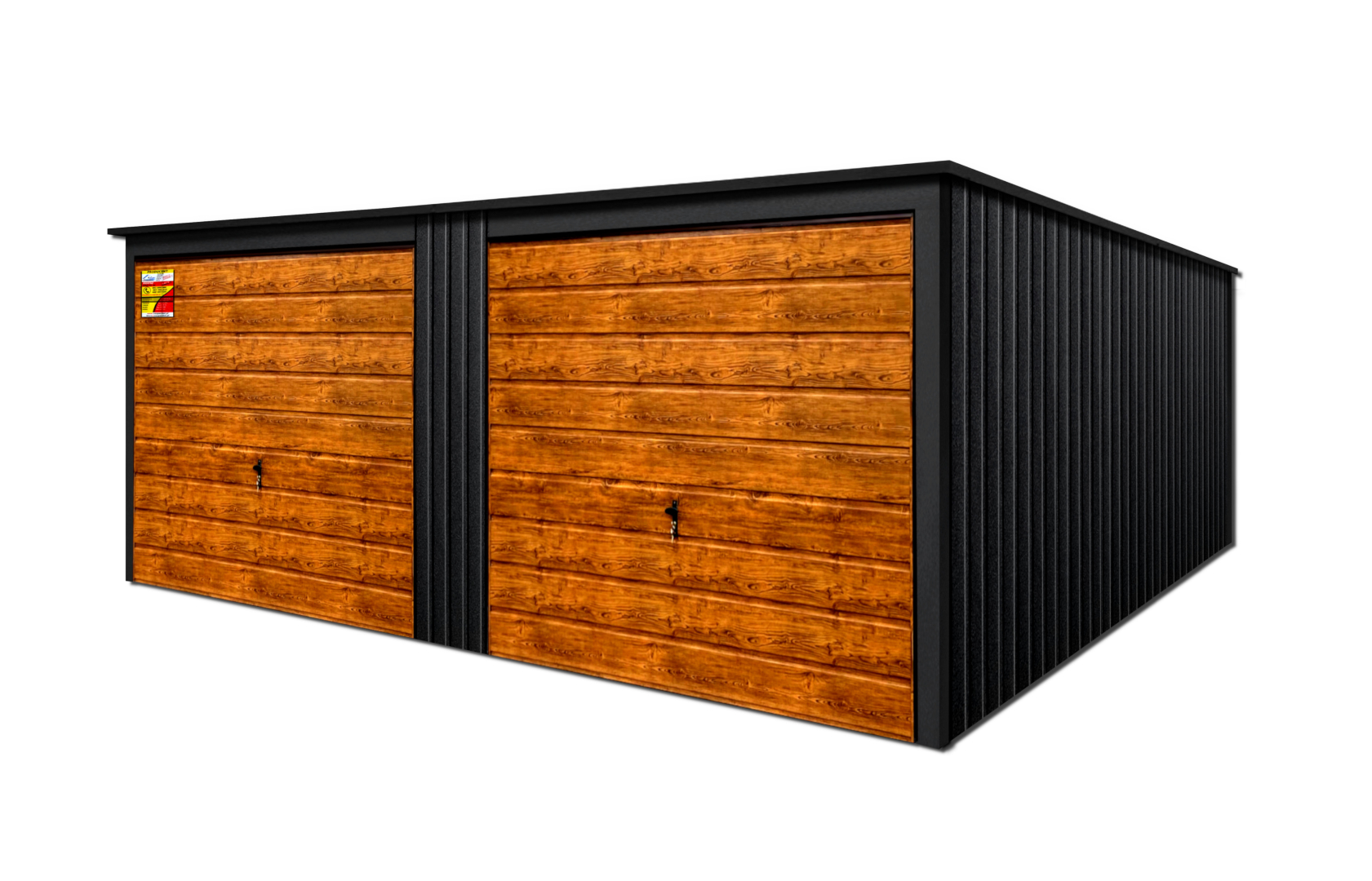 Garaż blaszany 8X7 LUX – Dwuspadowy dach, drewnopodobne bramy uchylne