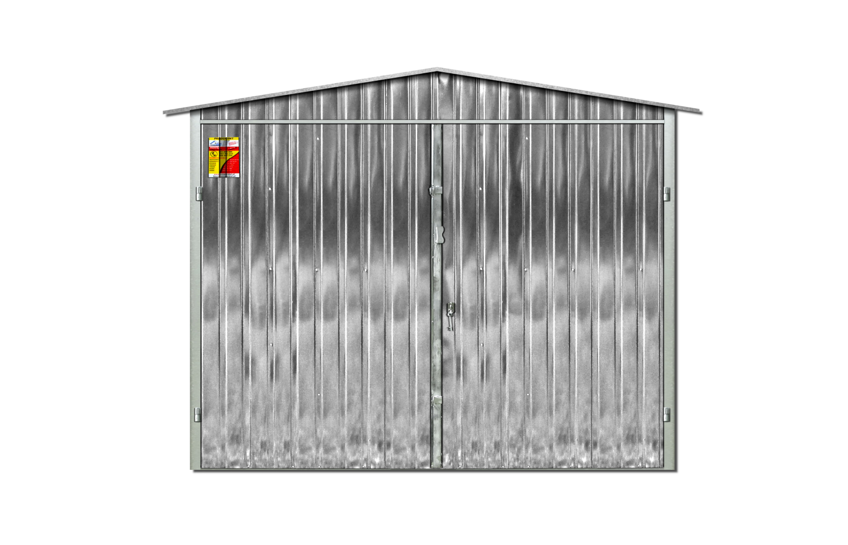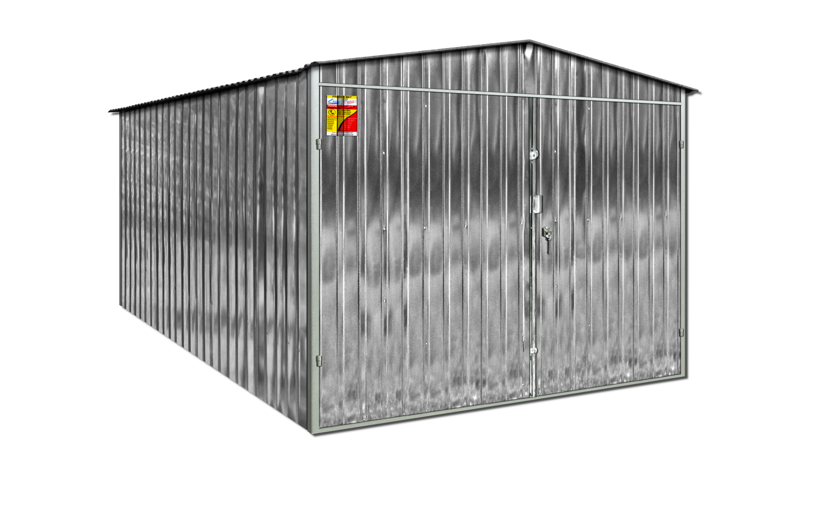 Garaż blaszany 6X7 ocynkowany – Dwuspadowy dach, bramy dwuskrzydłowe
