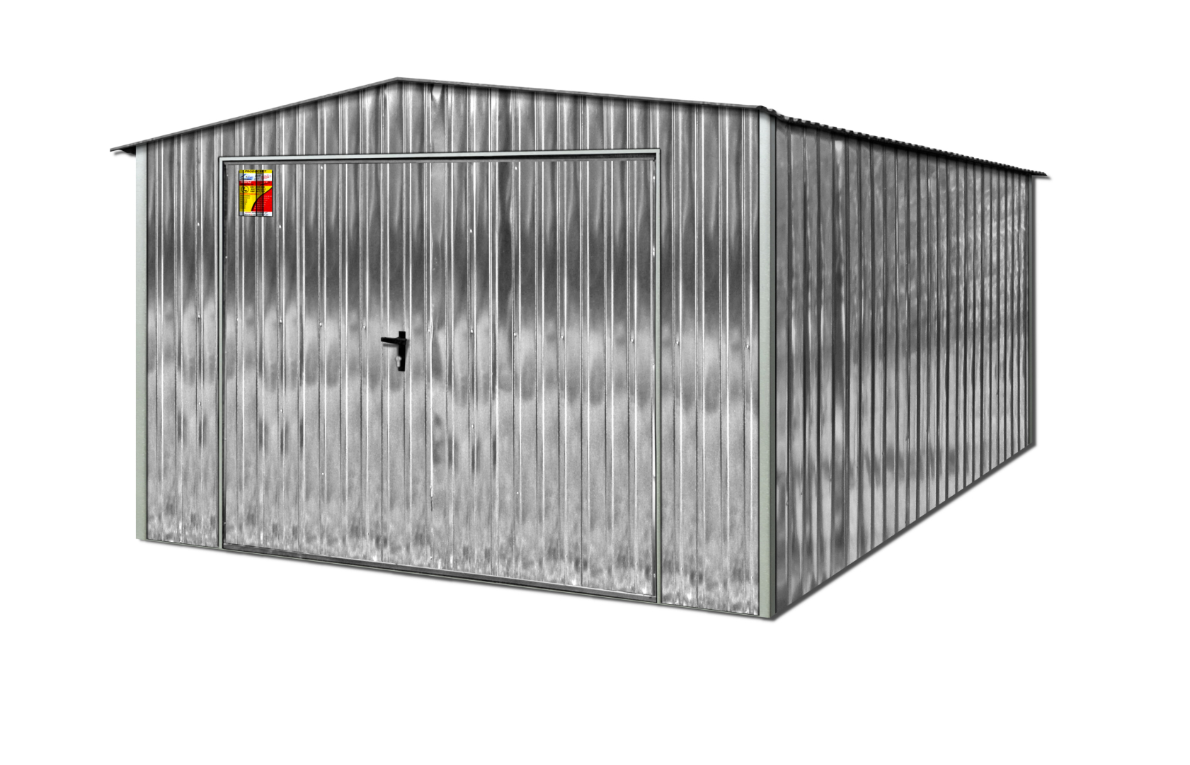 Garaż blaszany 5X7 ocynkowany – Dwuspadowy dach, brama dwuskrzydłowa