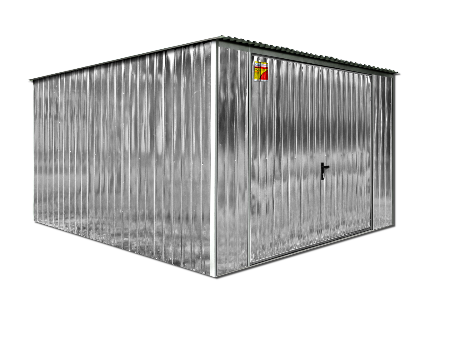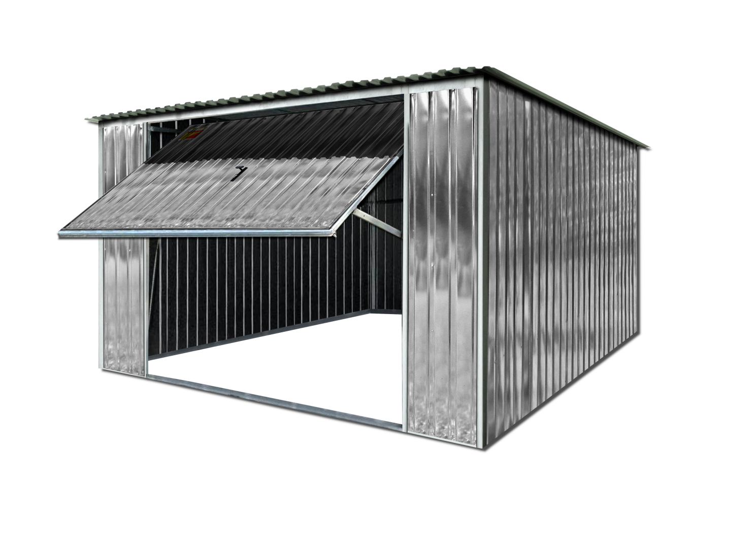 Garaż blaszany 4X7 ocynkowany – Dwuspadowy dach, brama uchylna