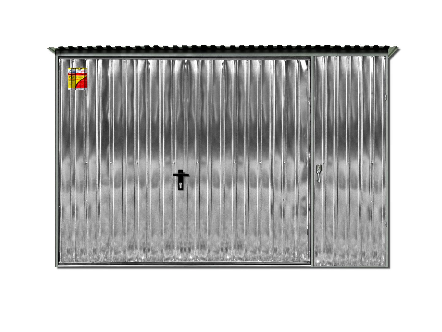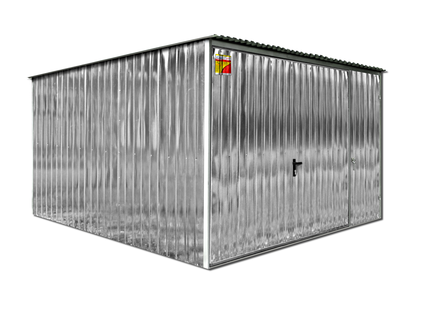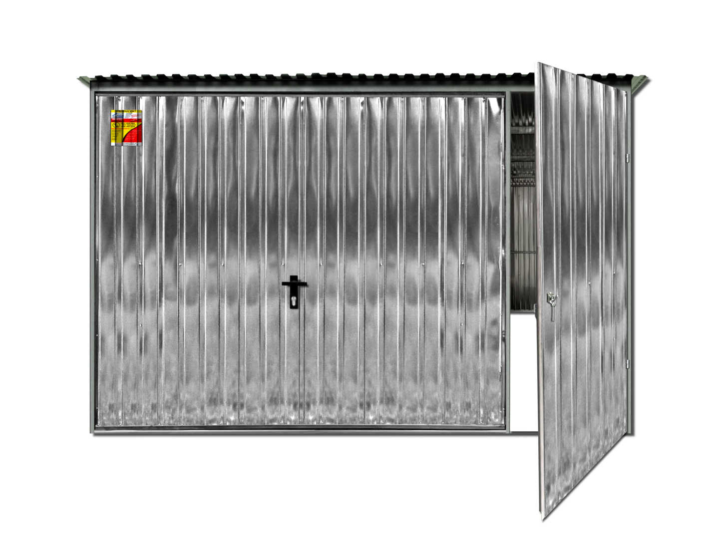 Garaż blaszany 6X5 ocynkowany – Dwuspadowy dach, bramy uchylne