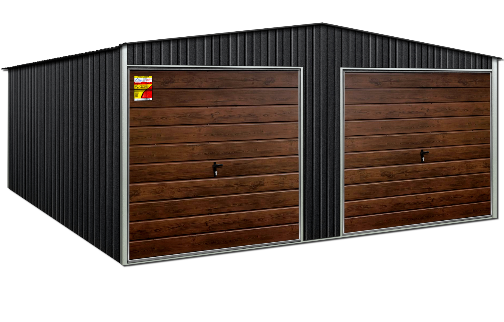 Garaż blaszany 7X6 LUX – Dwuspadowy dach, drewnopodobne bramy uchylne