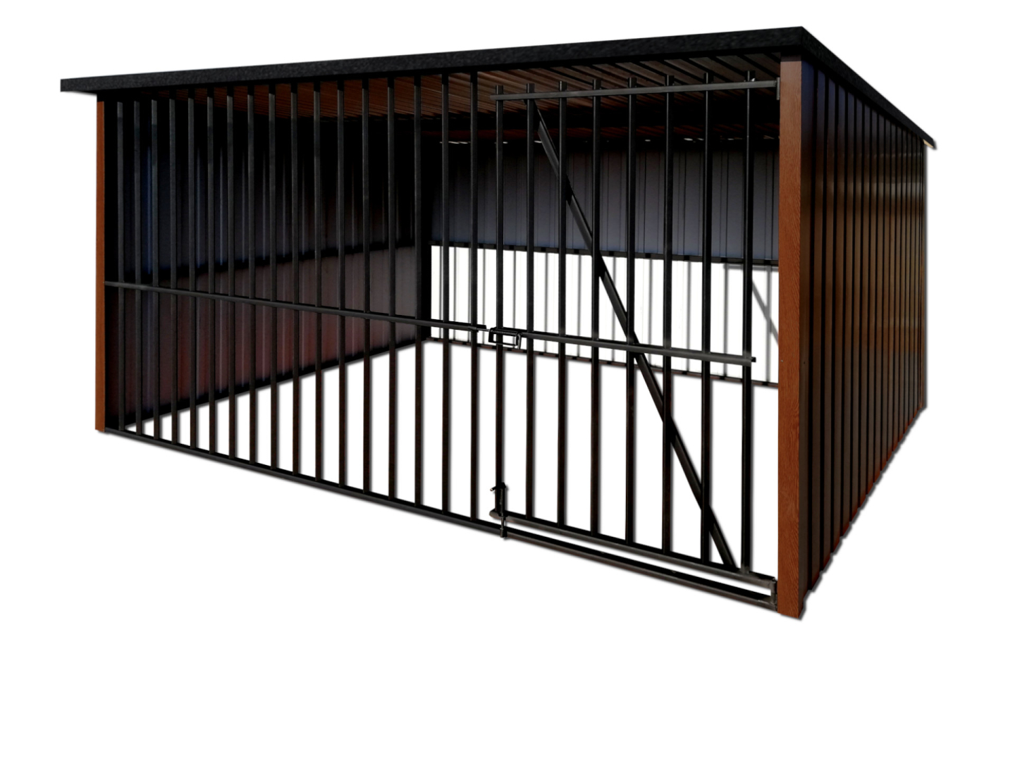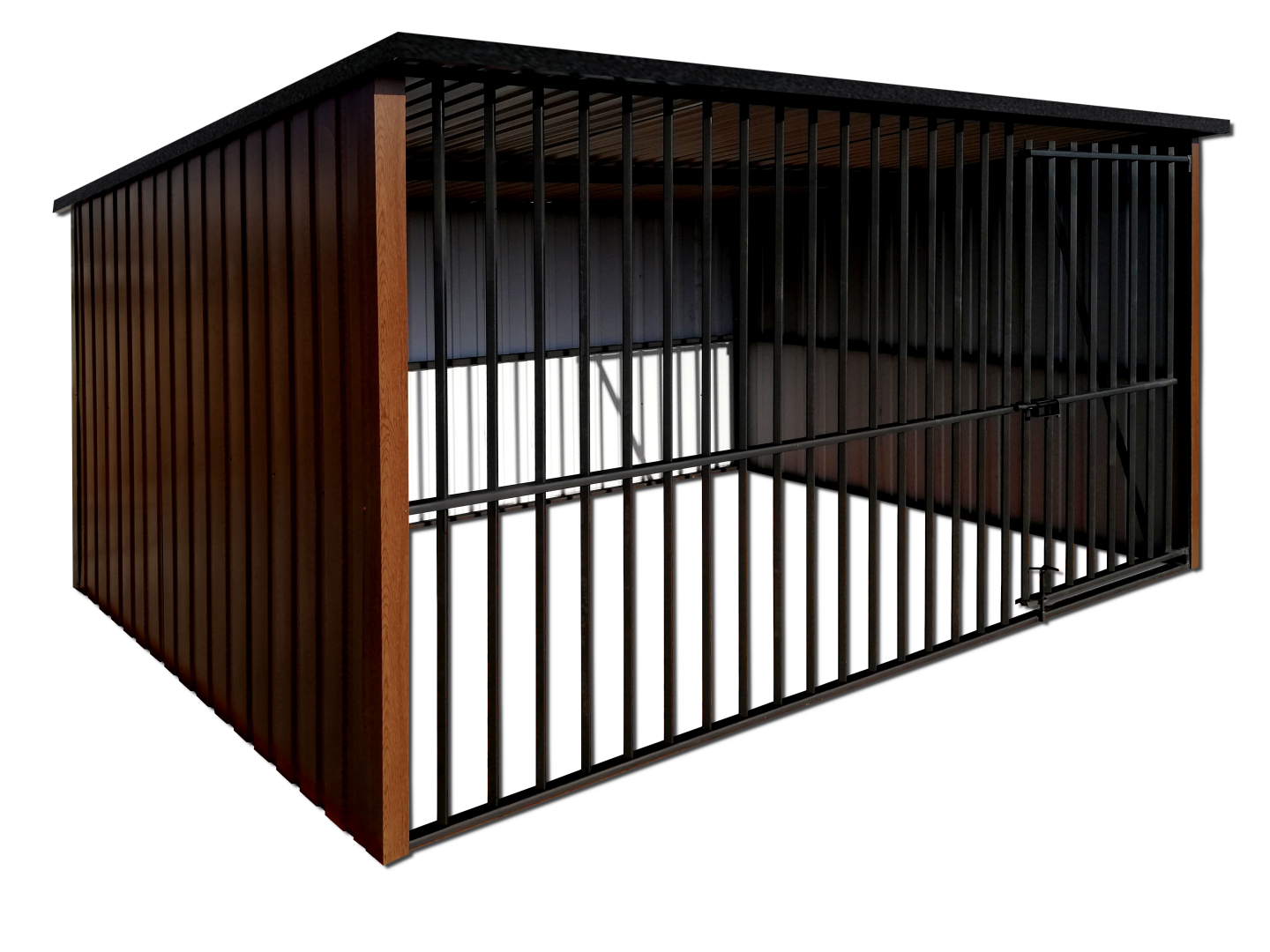 Oferowanym produktem jest kojec dla psa wykonany z czarnych profili, zawijanych-niezgrzewanych, wzbogacony w okucia blacharskie i ściany zabudowane blachą drewnopodobną!