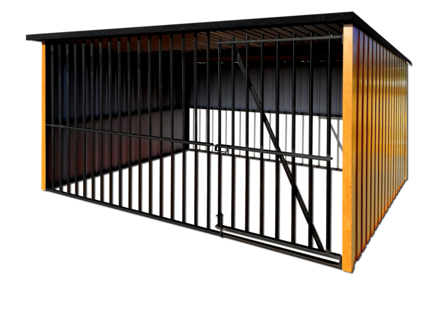 Oferowanym produktem jest kojec dla psa wykonany z czarnych profili, zawijanych-niezgrzewanych, wzbogacony w okucia blacharskie i ściany zabudowane blachą drewnopodobną!