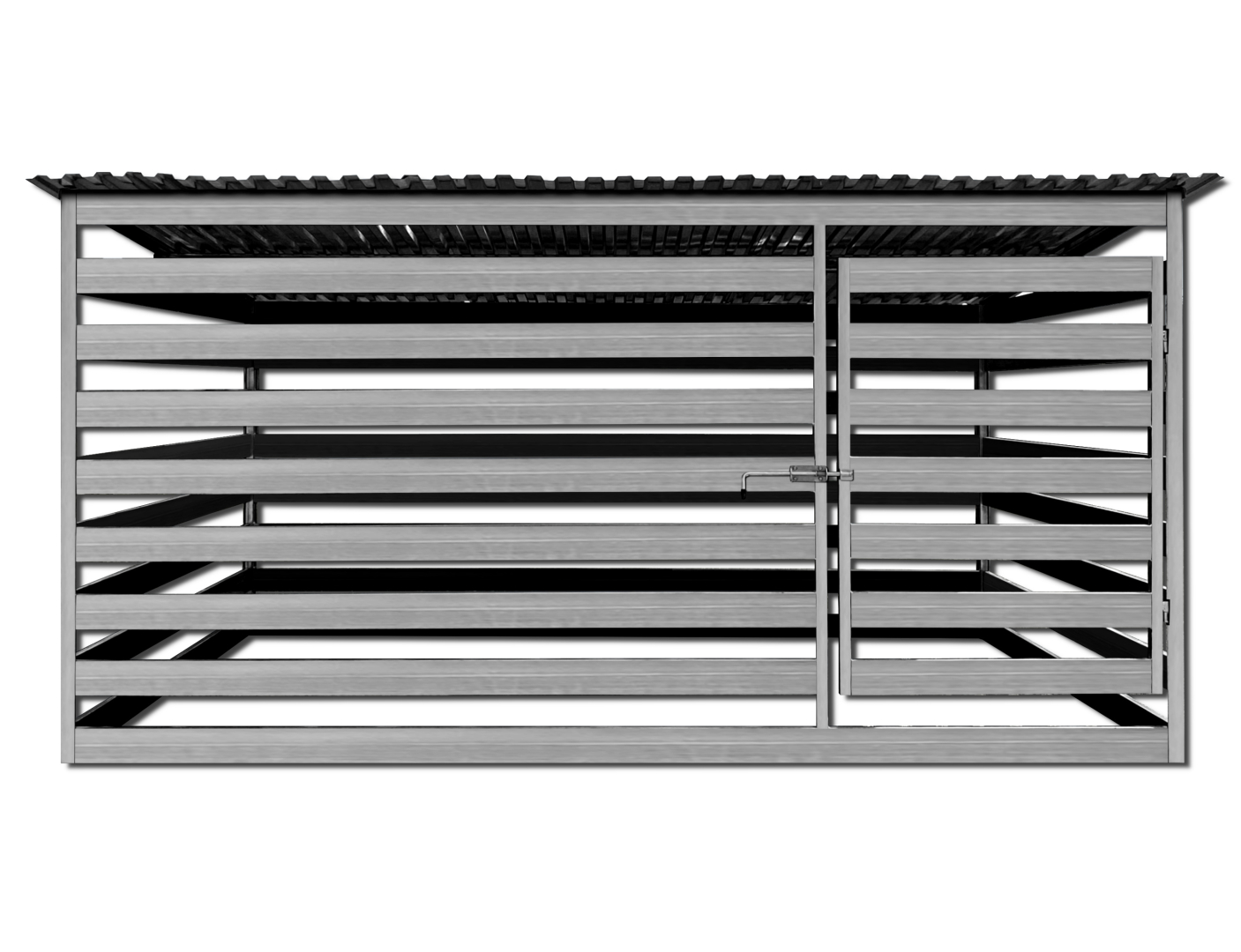 Konstrukcja poziomych paneli ocynkowanych – kojec wykonany z profili zamkniętych 100 x 20 ułożonych poziomo - odstęp między szczebelkami wynosi około 9cm.