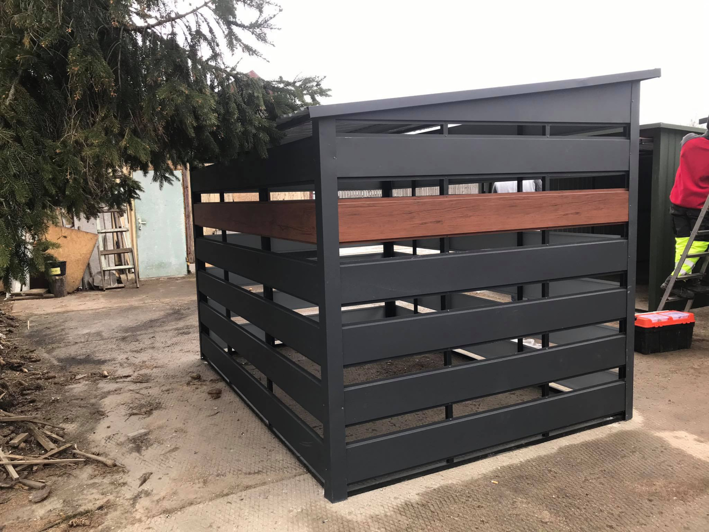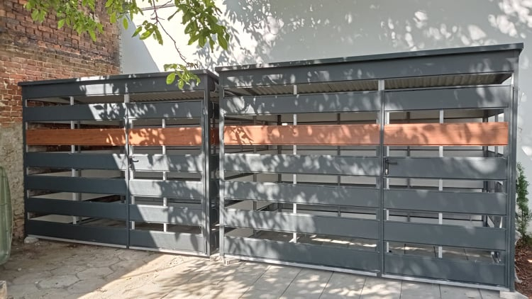 W związku ze zmianą technologii producent zastrzega sobie prawo do zmiany koloru malowanej konstrukcji wiaty śmietnikowej