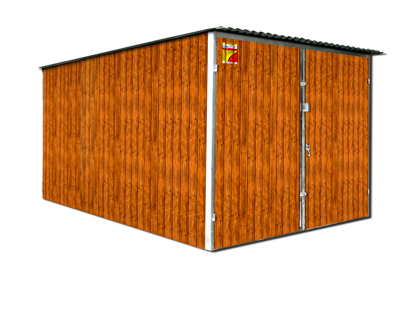 Kup teraz!Garaż blaszany drewnopodobny 2X5 – Dwuspadowy dach, brama dwuskrzydłowa