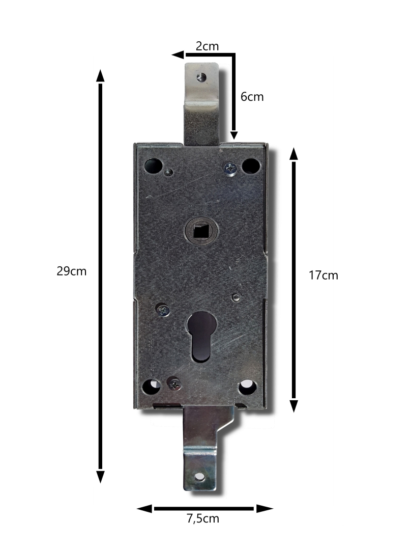 Zamek do bramy podnoszonej w zestawie z wkładką i klamką