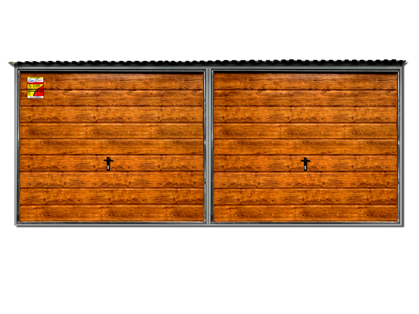 Garaż blaszany 8X6 LUX drewnopodobny – Dwuspadowy dach, bramy uchylne