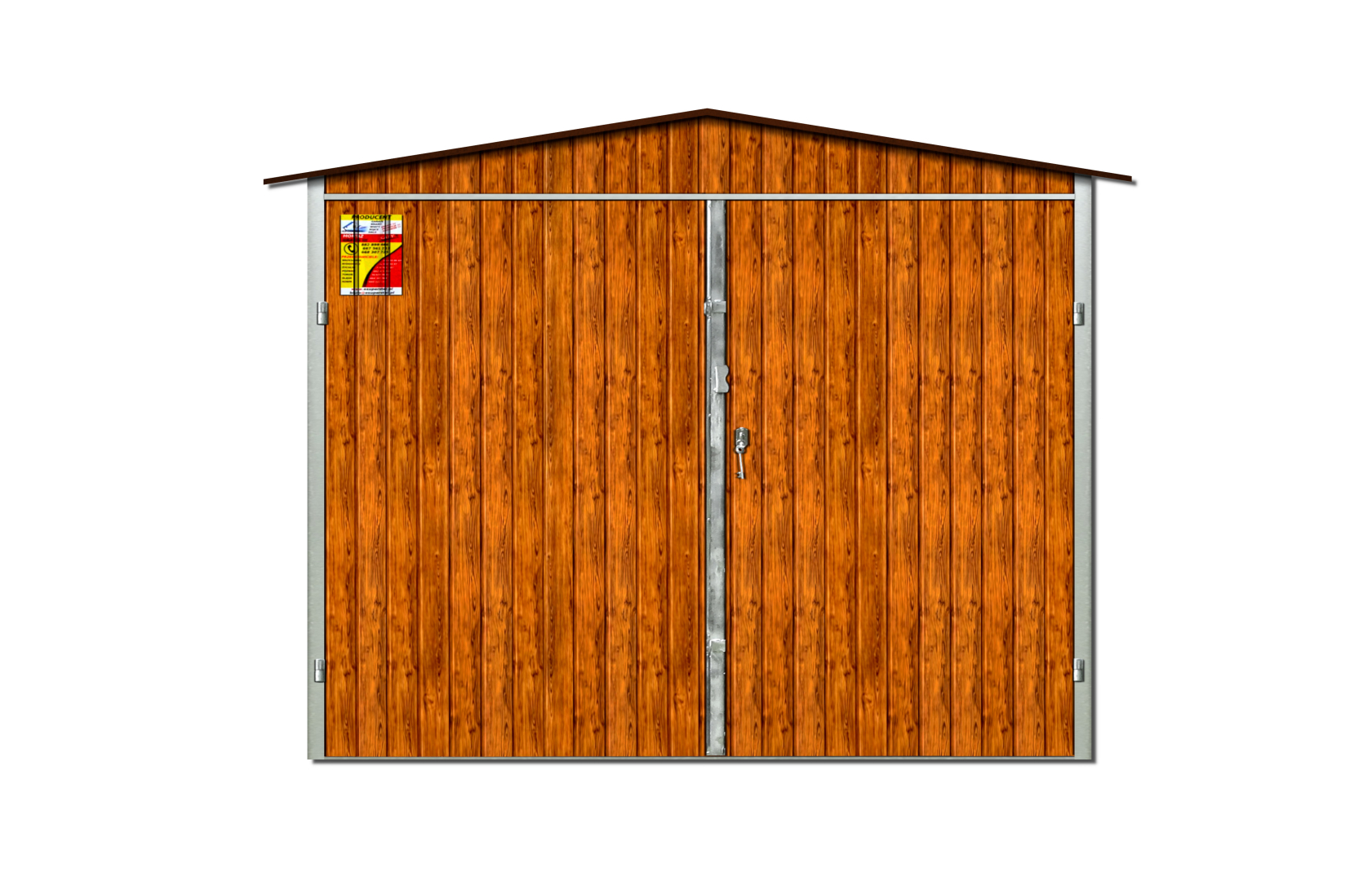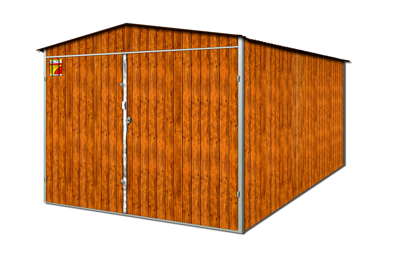 Garaż blaszany drewnopodobny 7X5 – Dwuspadowy dach, bramy dwuskrzydłowe