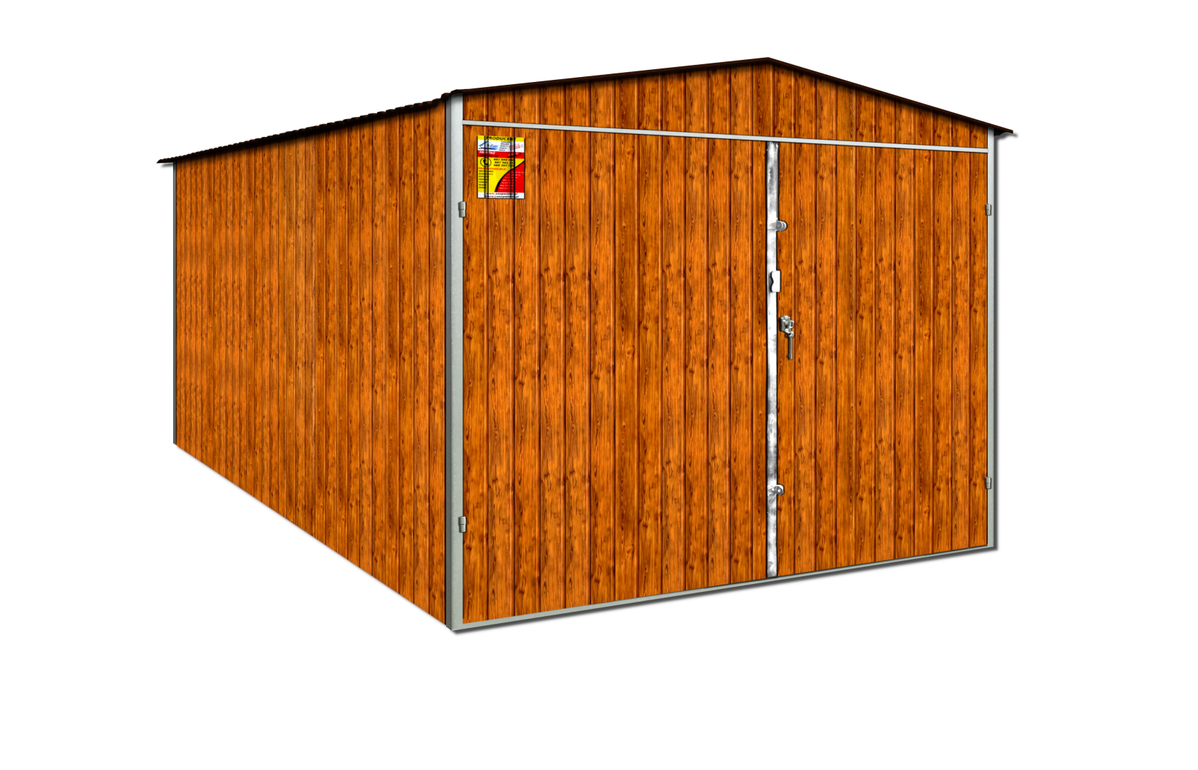 GARAŻ BLASZANY DREWNOPODOBNY 3X3 – DWUSPADOWY DACH, BRAMA DWUSKRZYDŁOWA, KONSTRUKCJA OCYNKOWANA