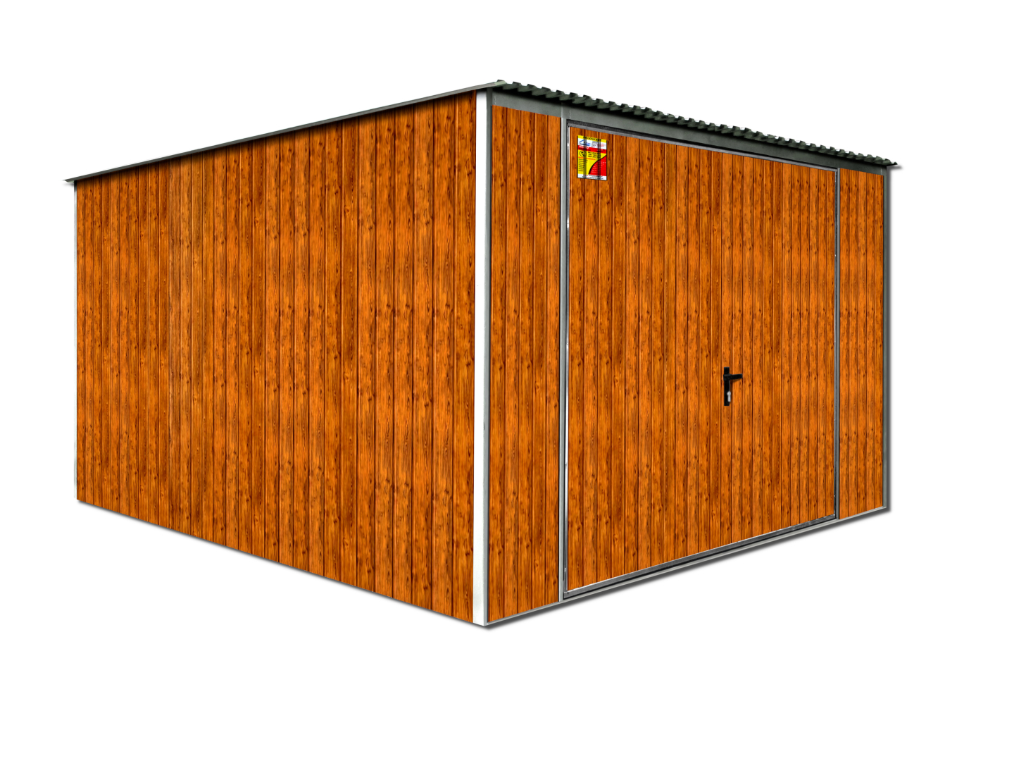 Garaż blaszany drewnopodobny 3X3 – Dwuspadowy dach, brama uchylna