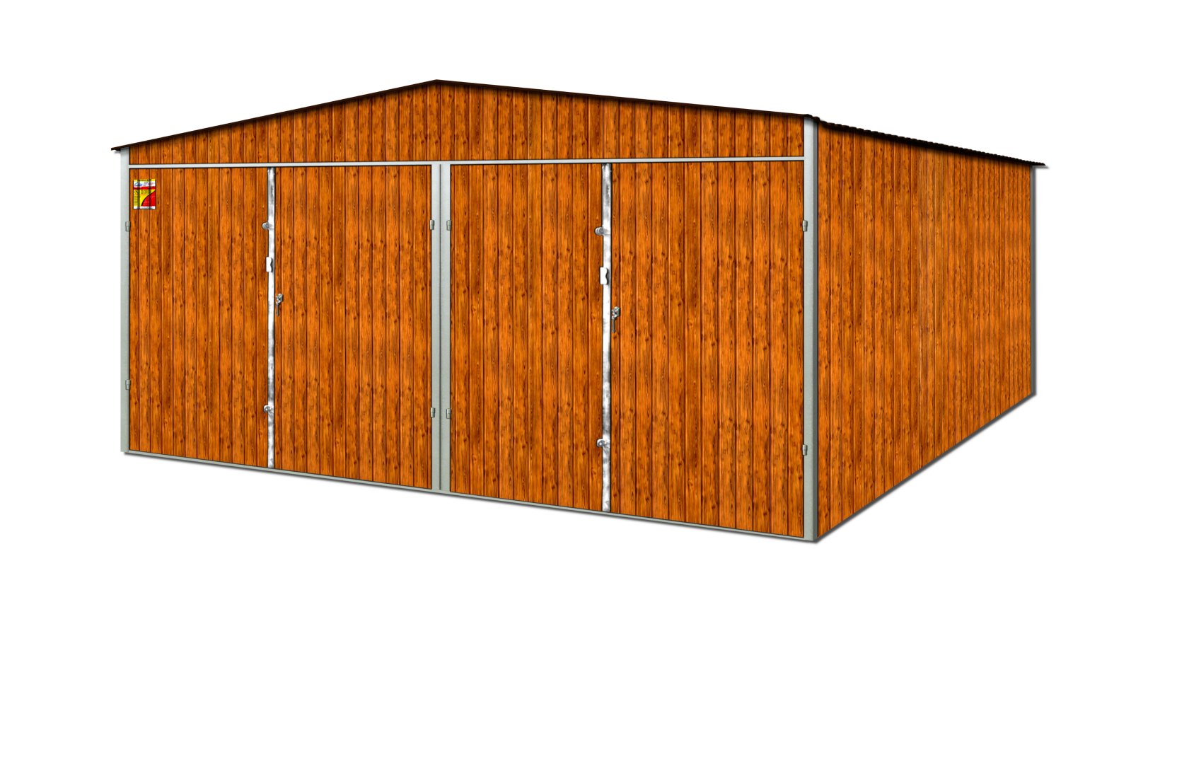 GARAŻ BLASZANY DREWNOPODOBNY 6X6 – DWUSPADOWY DACH, BRAMY DWUSKRZYDŁOWE, KONSTRUKCJA OCYNKOWANA
