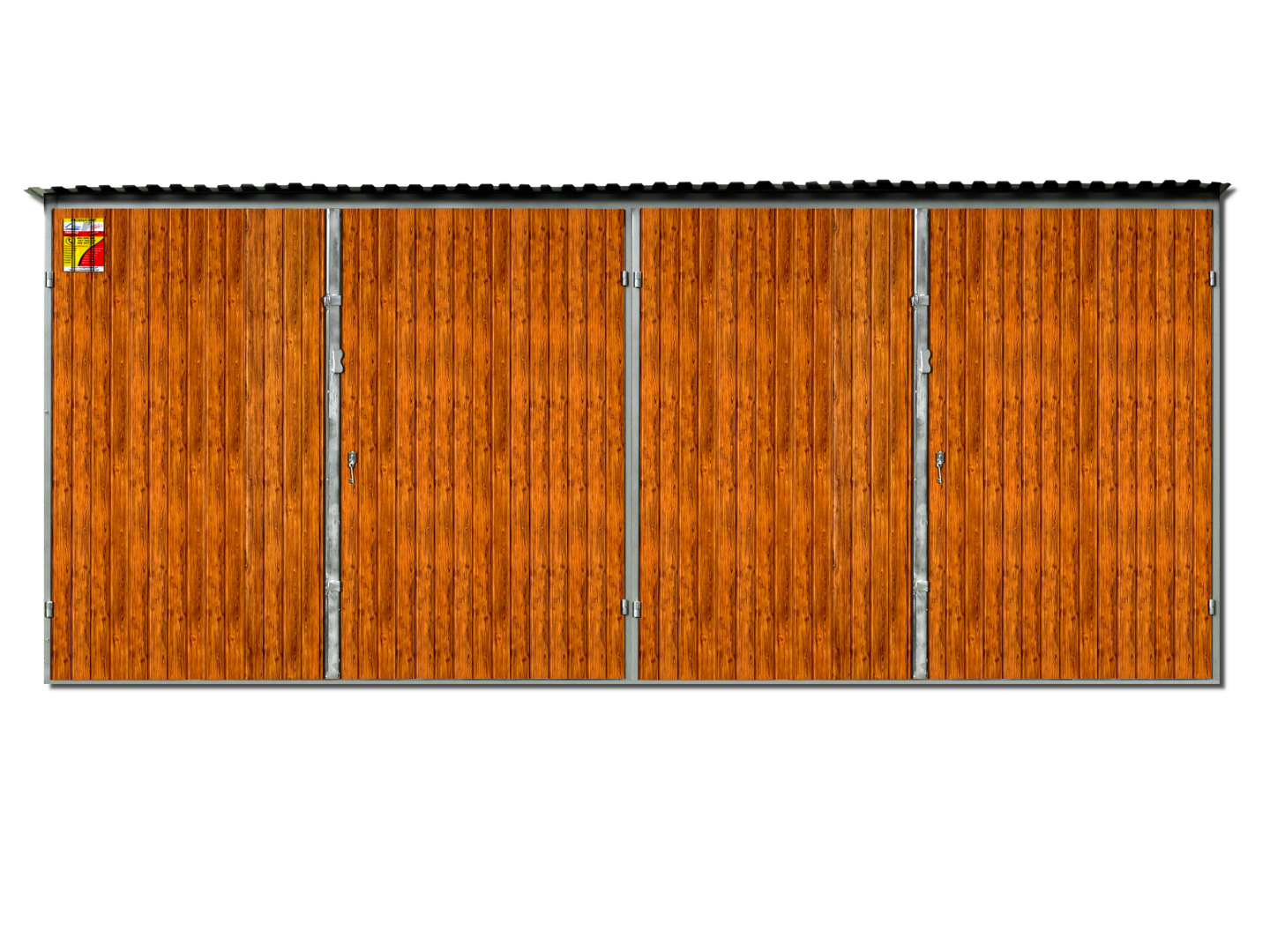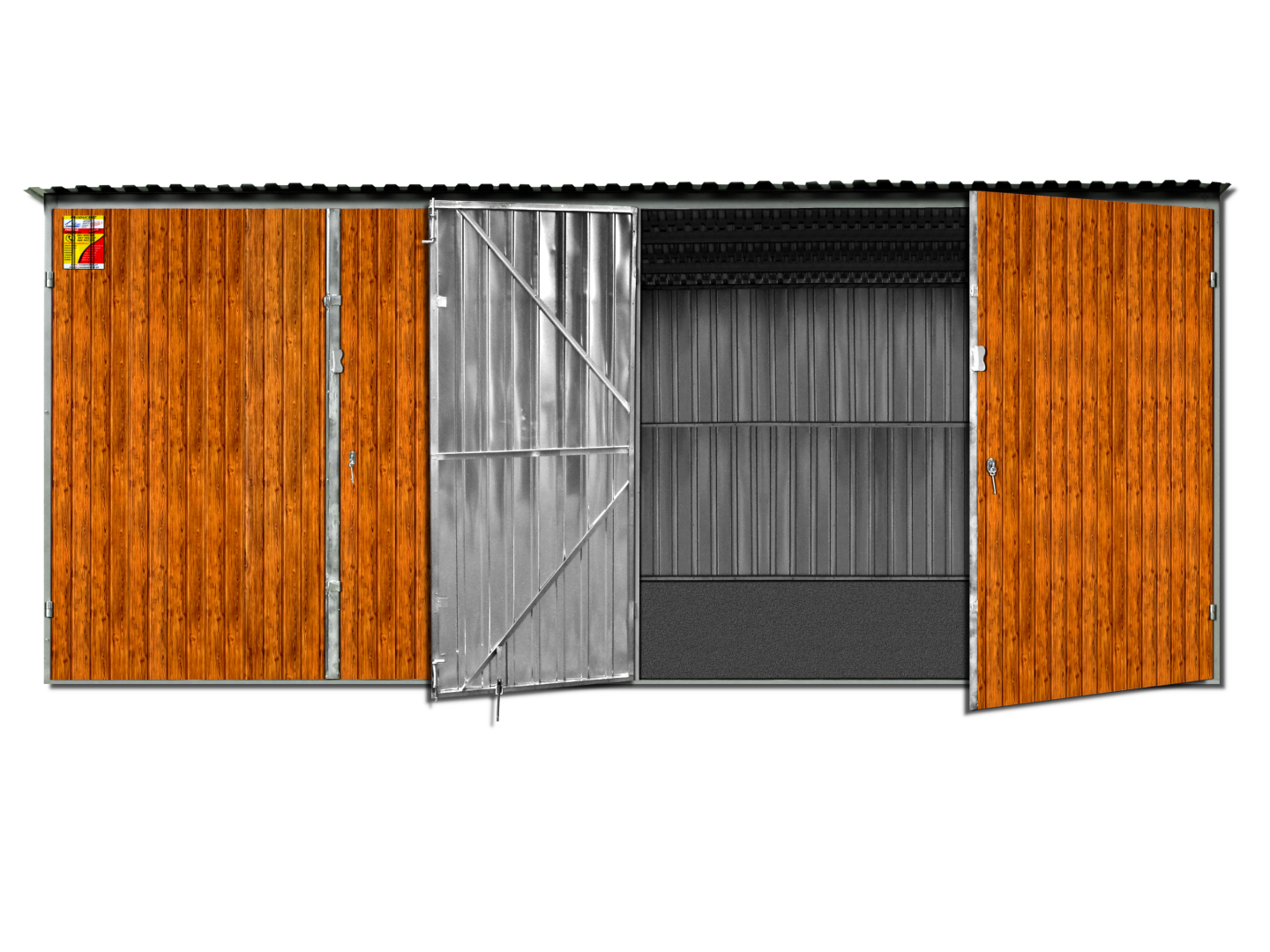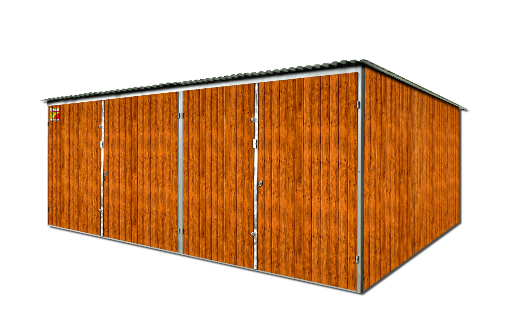 Garaż blaszany drewnopodobny 2X6 – Dwuspadowy dach, brama dwuskrzydłowa