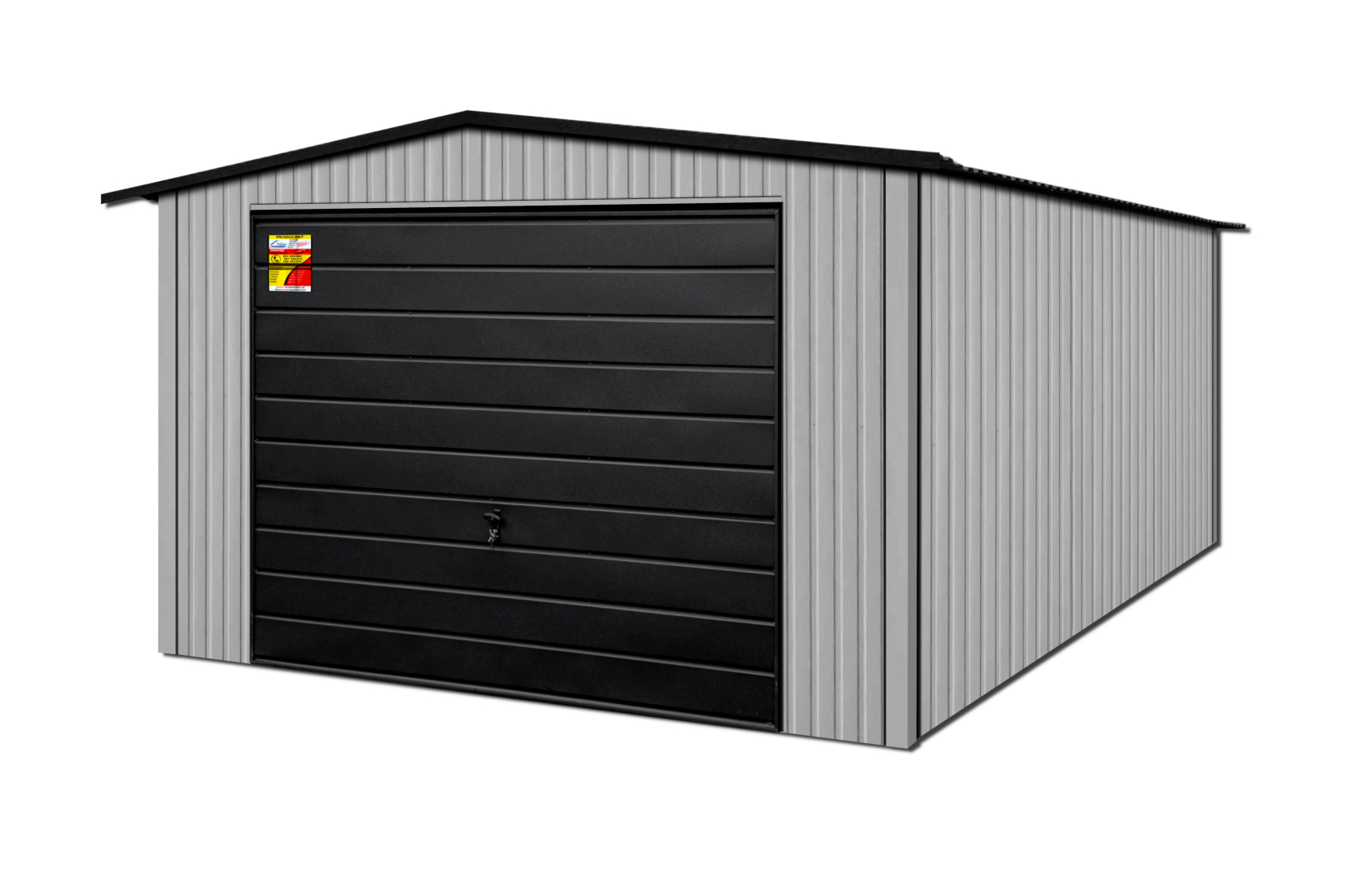 Garaż blaszany 6X4 LUX – Dwuspadowy dach, bramy uchylne, czarny mat