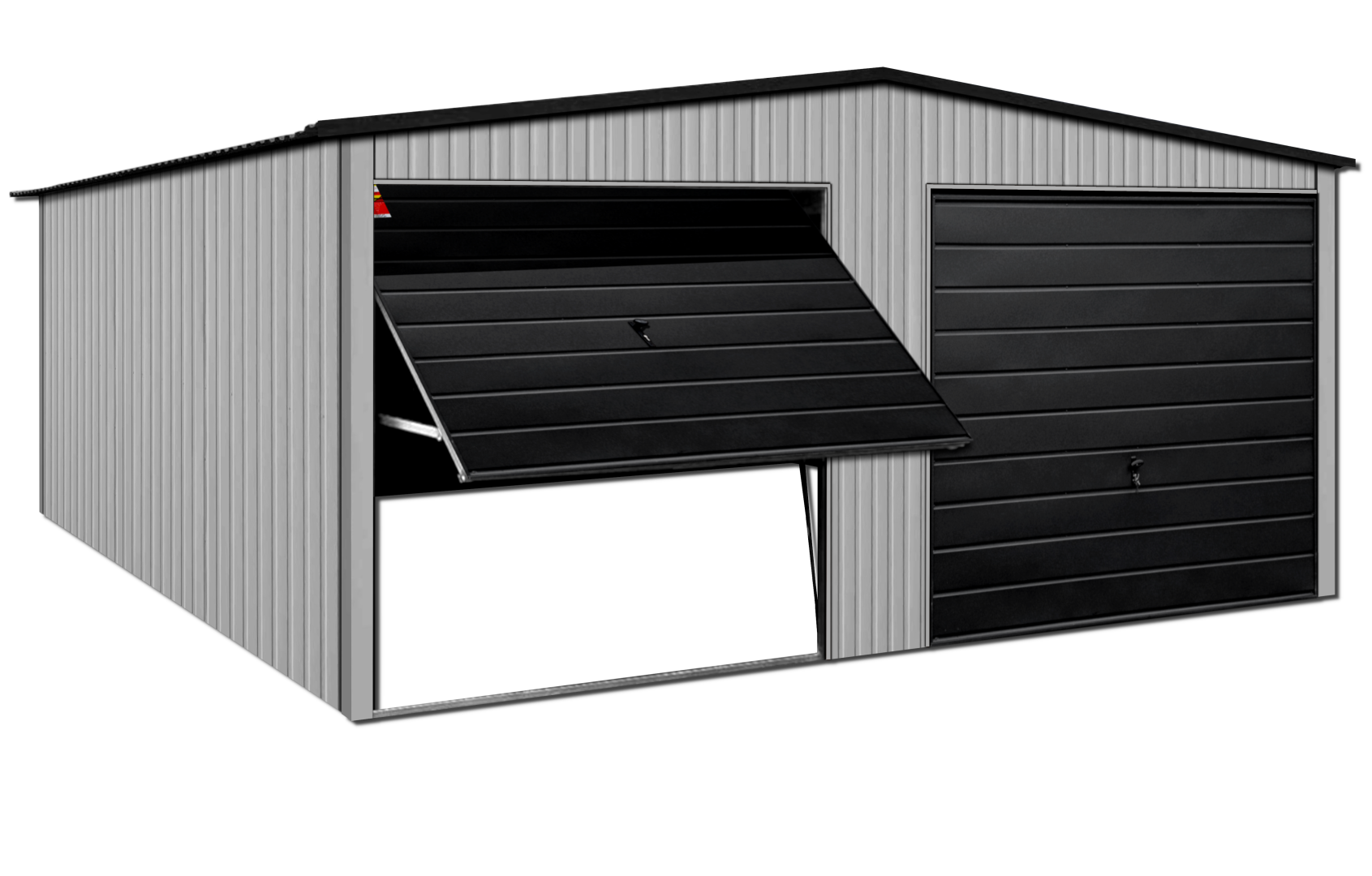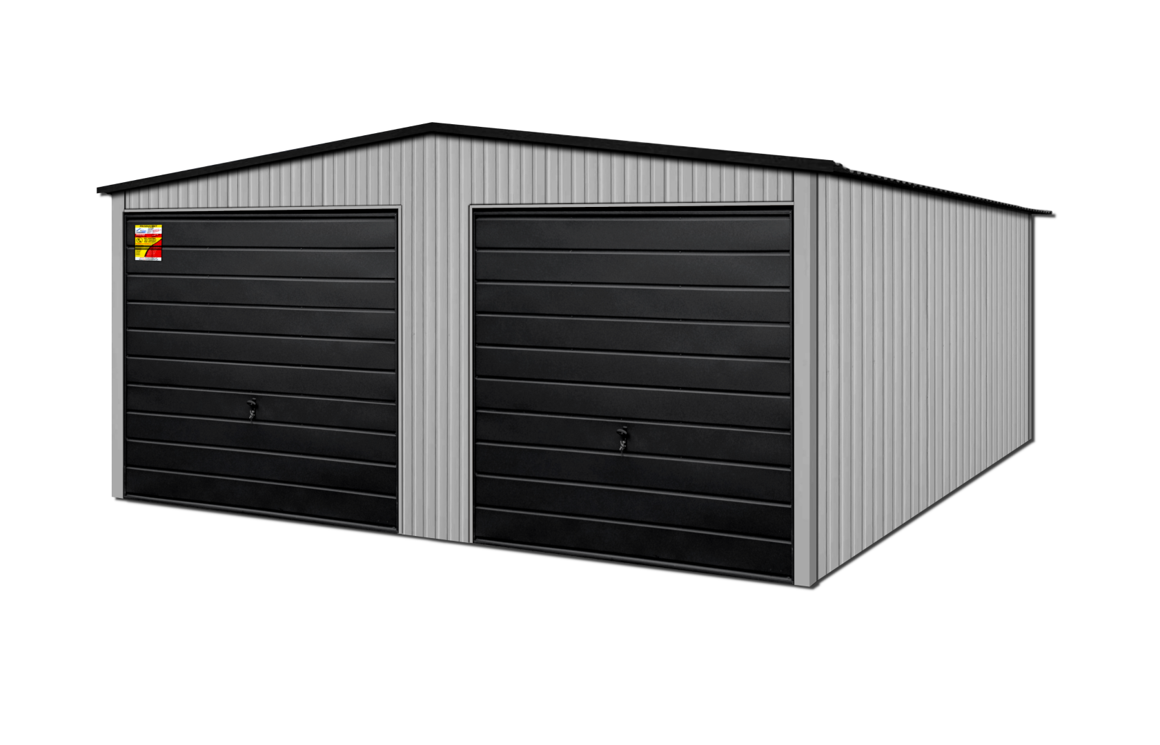 Kup teraz!Garaż blaszany 8X7 LUX – Dwuspadowy dach, bramy uchylne