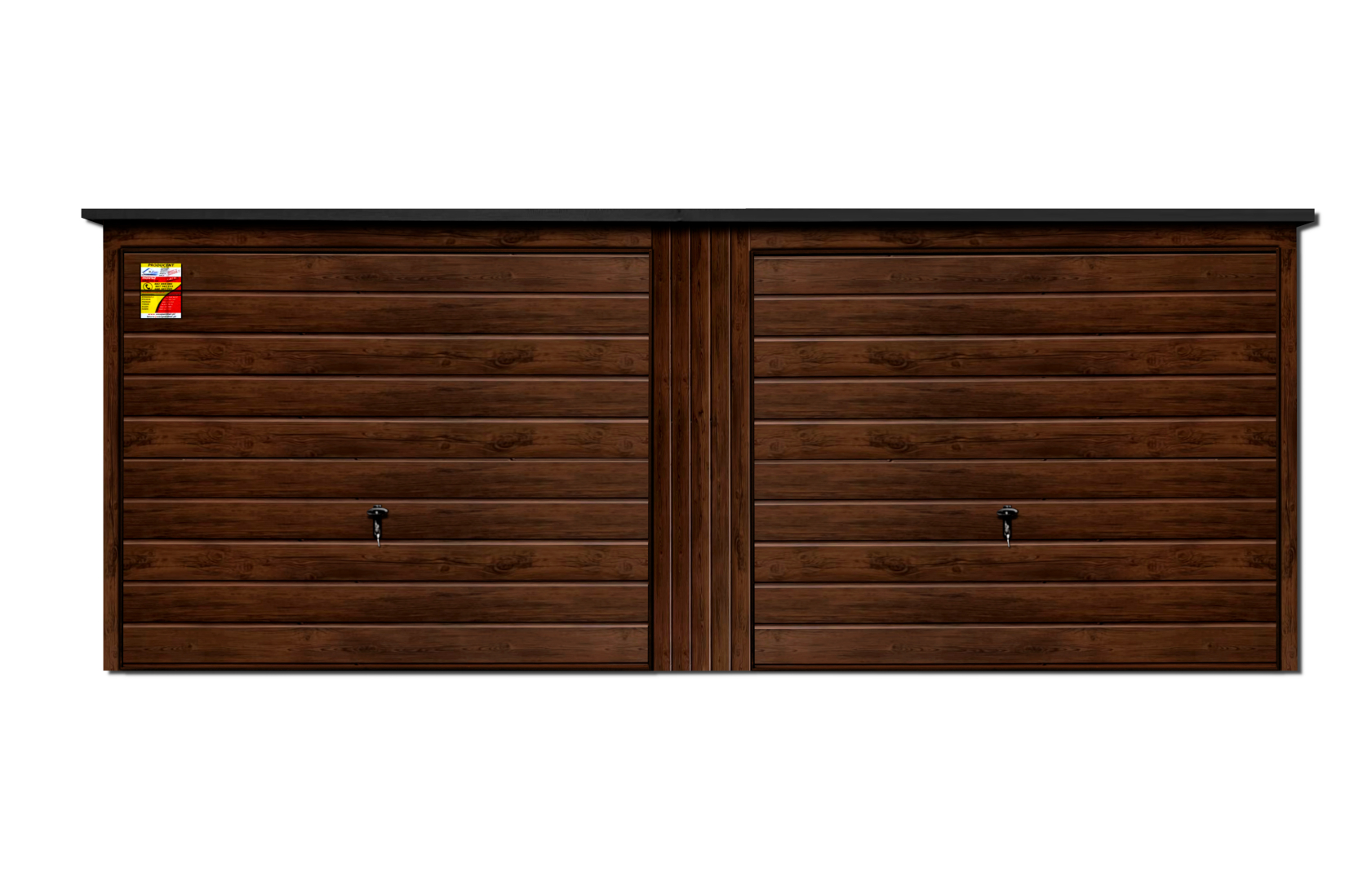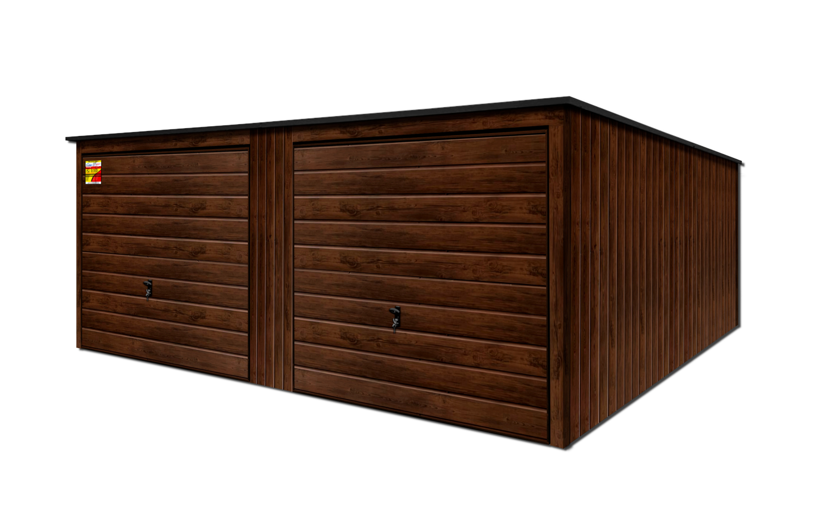 Garaż blaszany 6X5 LUX – Dwuspadowy dach, drewnopodobne bramy uchylne