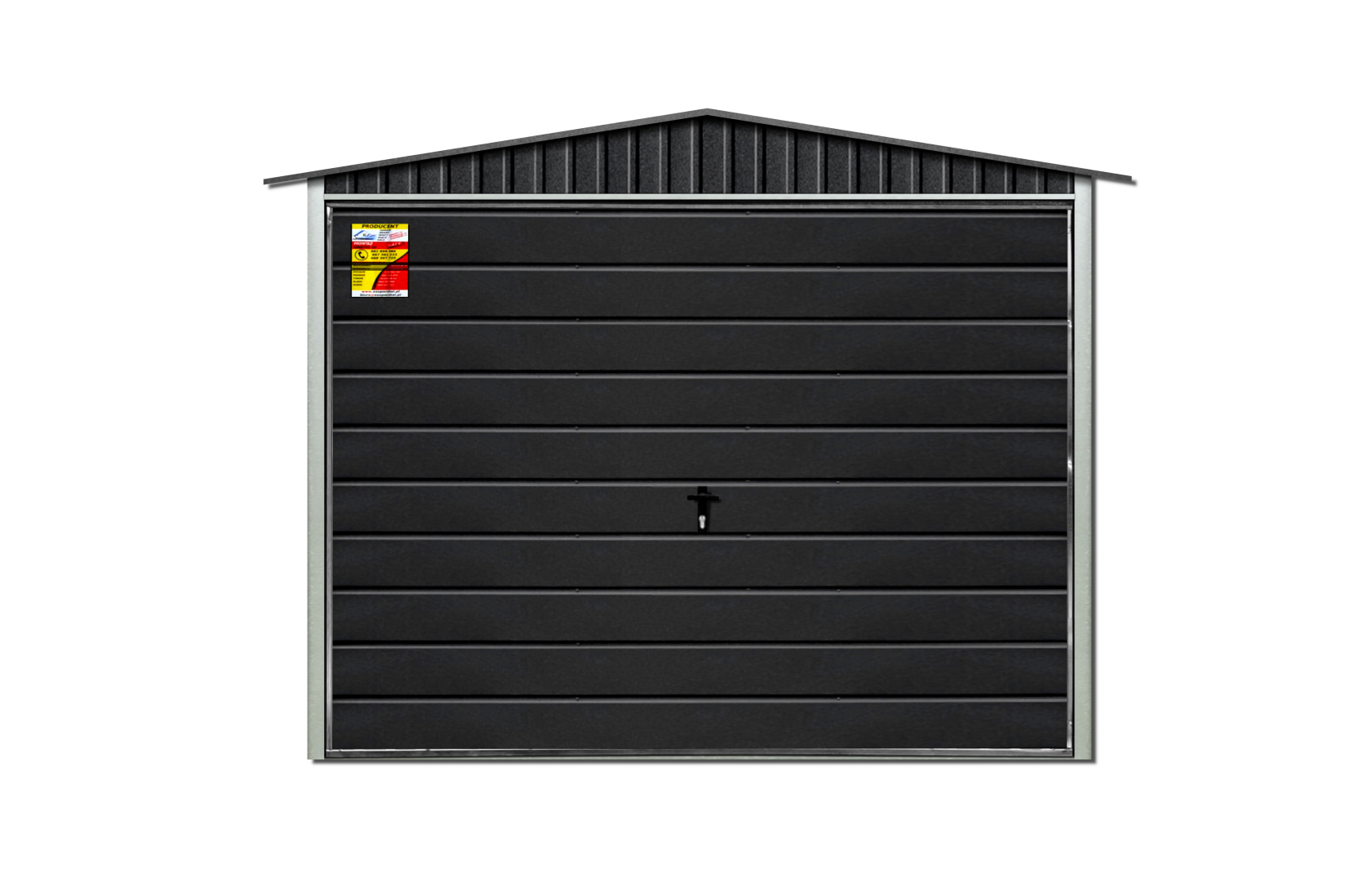 Garaż blaszany 7X6 LUX – Dwuspadowy dach, bramy uchylne, grafit mat