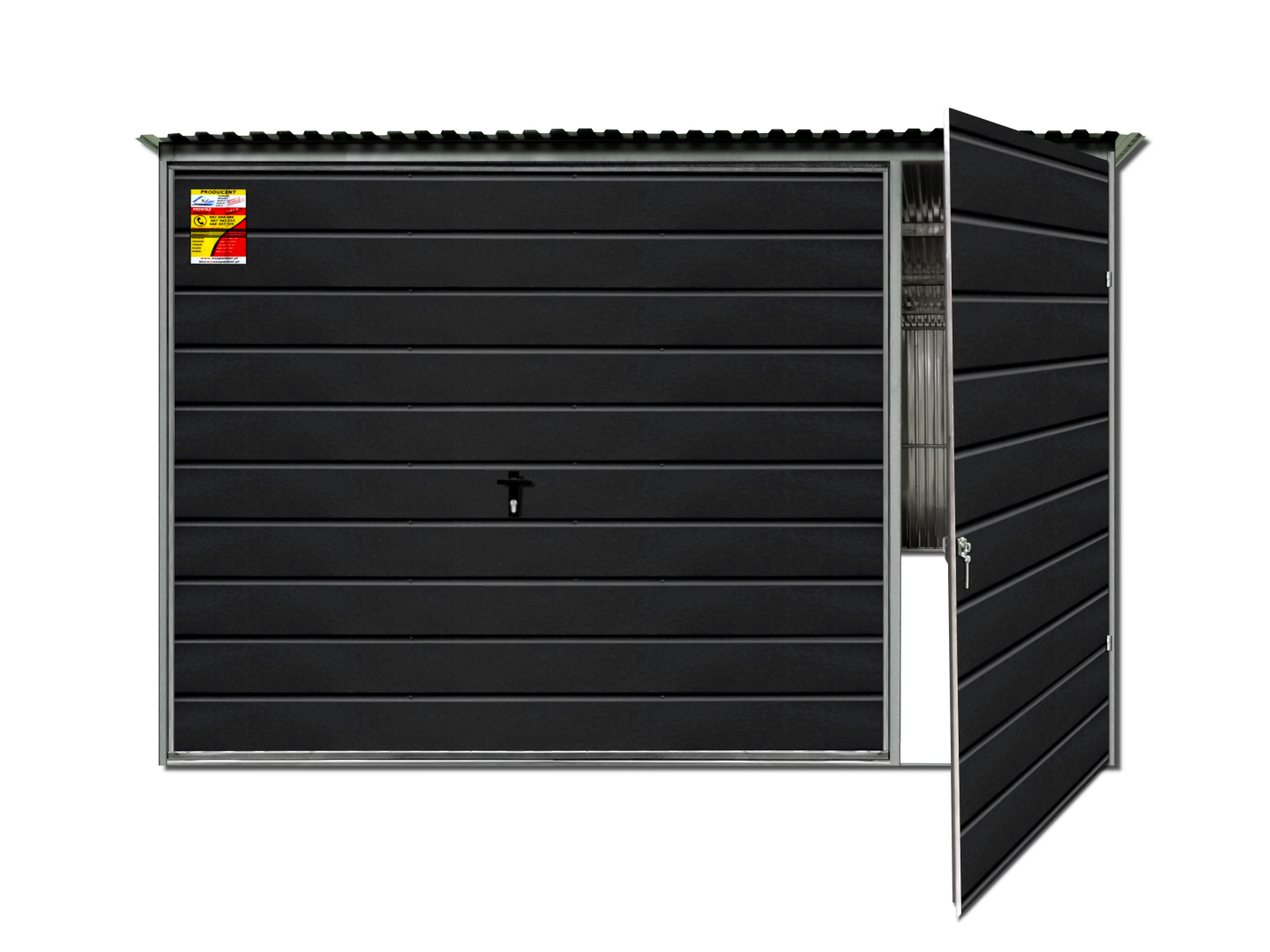 Garaż blaszany 2X3 LUX – Dwuspadowy dach, brama uchylna, grafit mat