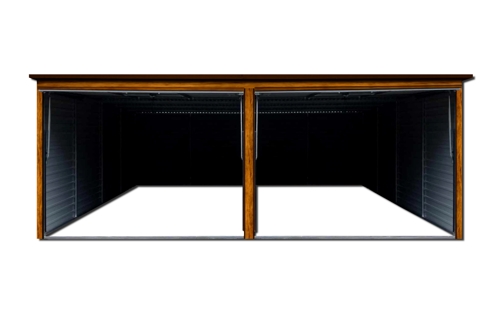 Garaż blaszany 8X5 PREMIUM – Spad dachu do tyłu, bramy uchylne