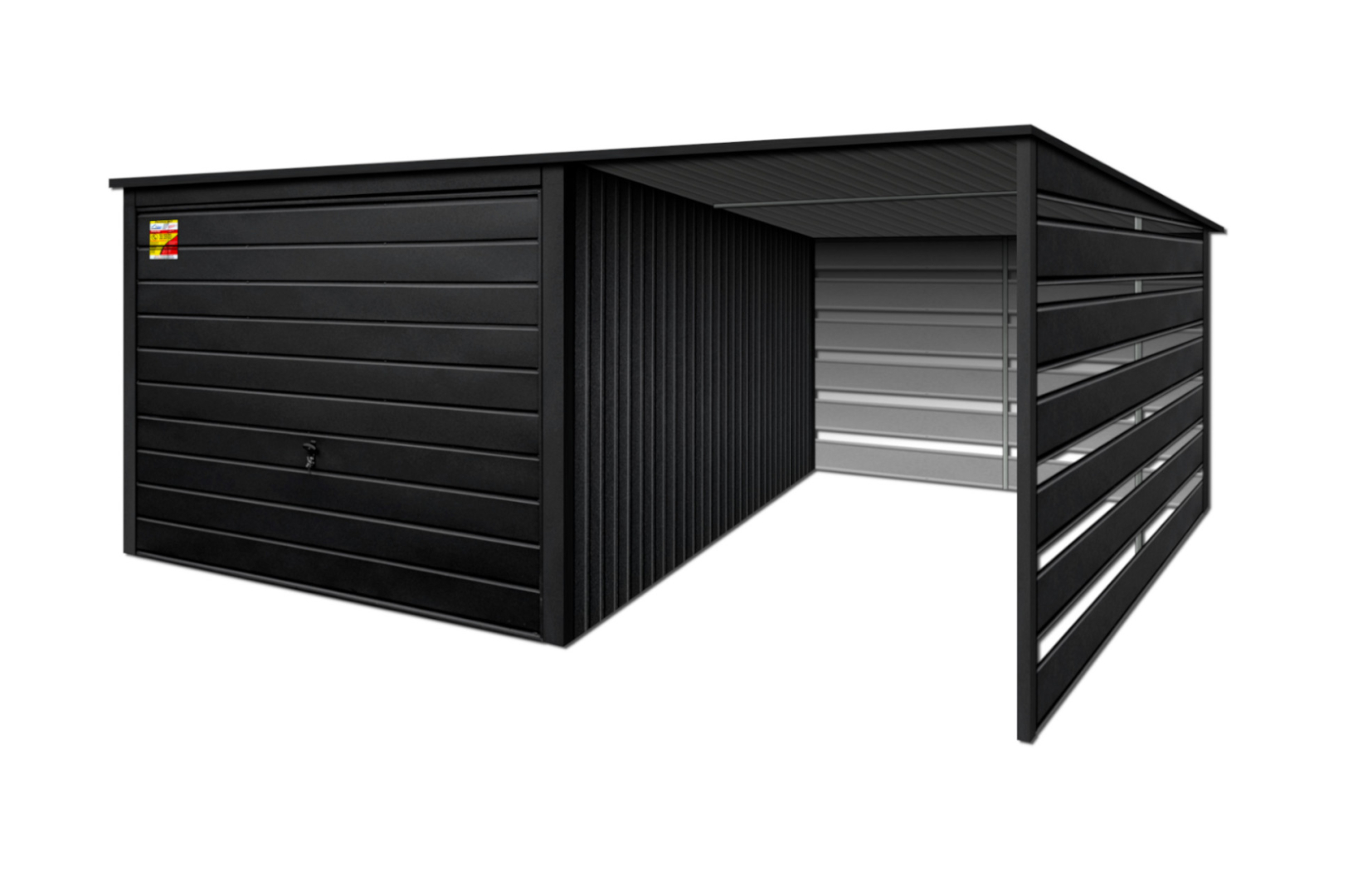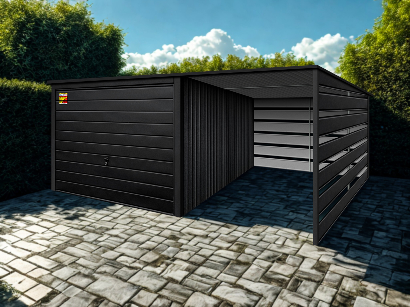 Oferowanym produktem jest innowacyjny garaż blaszany z serii LUX, wzbogacony w dobudowaną wiatę, wykonaną w nowoczesnym Systemie SMK!