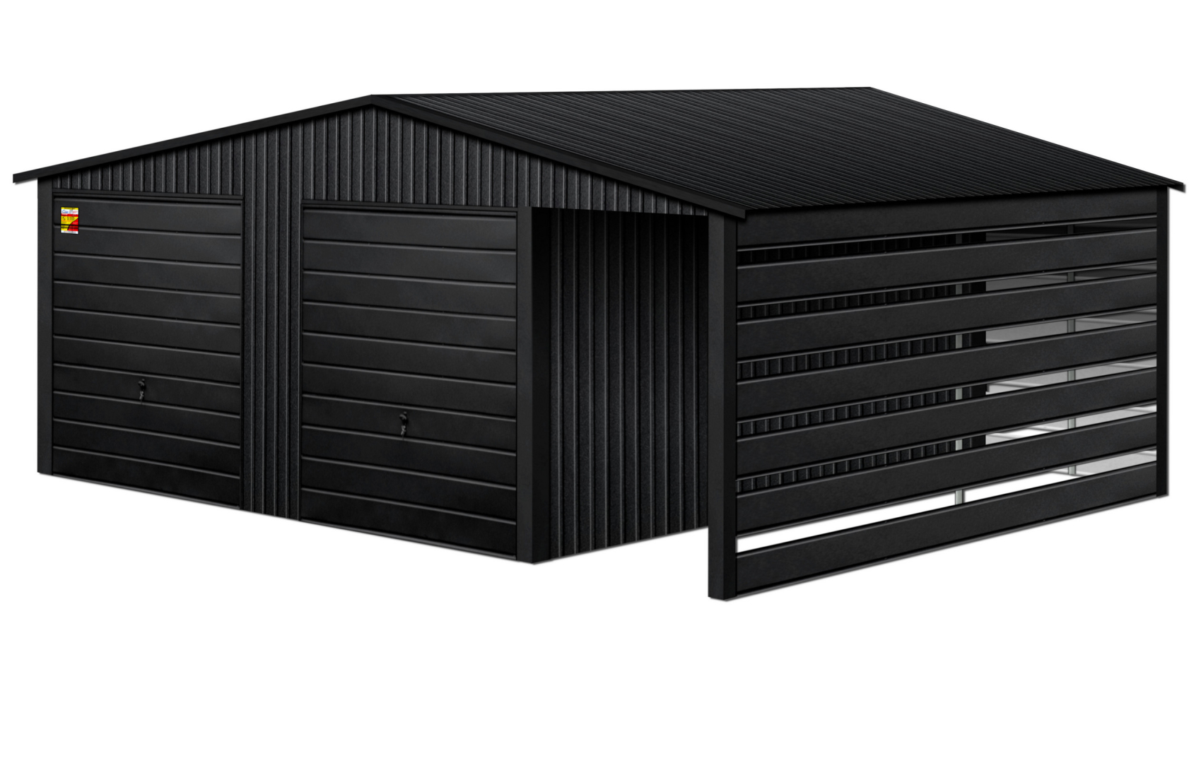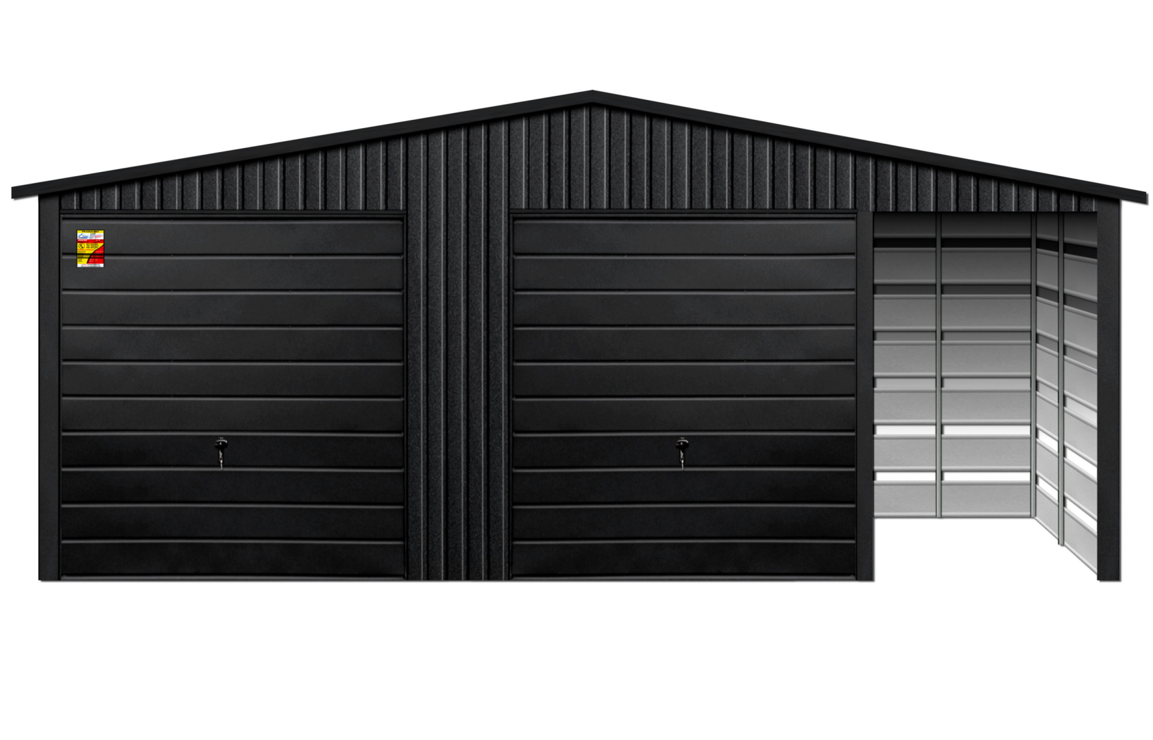 GARAŻ LUX 9X6 Z WIATĄ SMK – DWUSPADOWY DACH, BRAMY UCHYLNE, OKUCIA BLACHARSKIE DACHU I NAROŻNIKÓW
