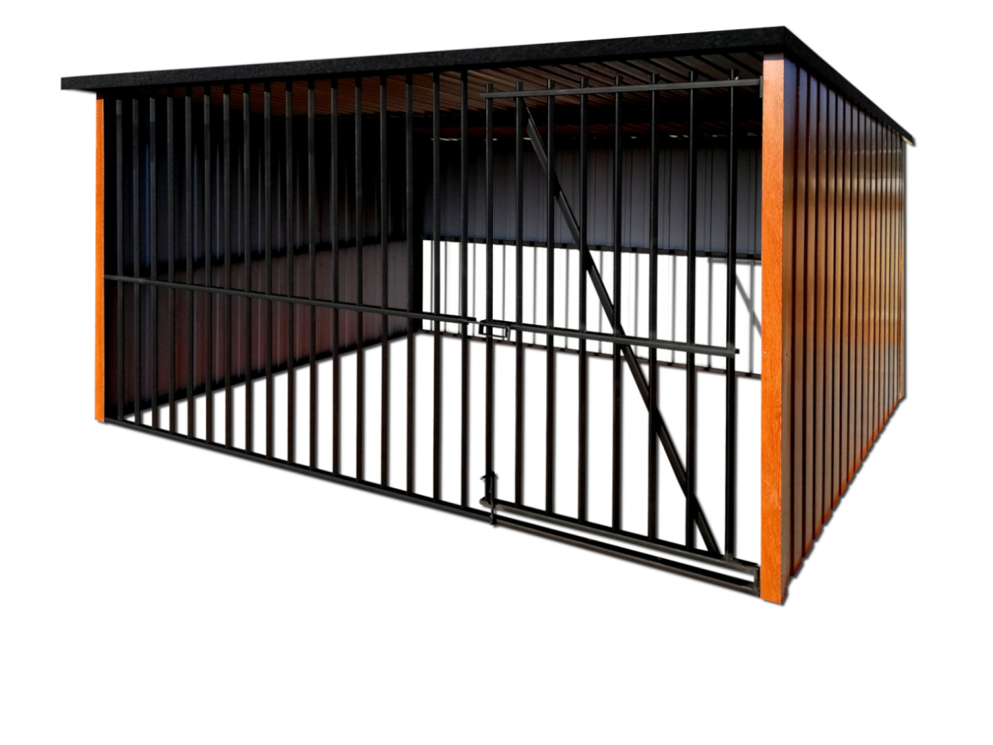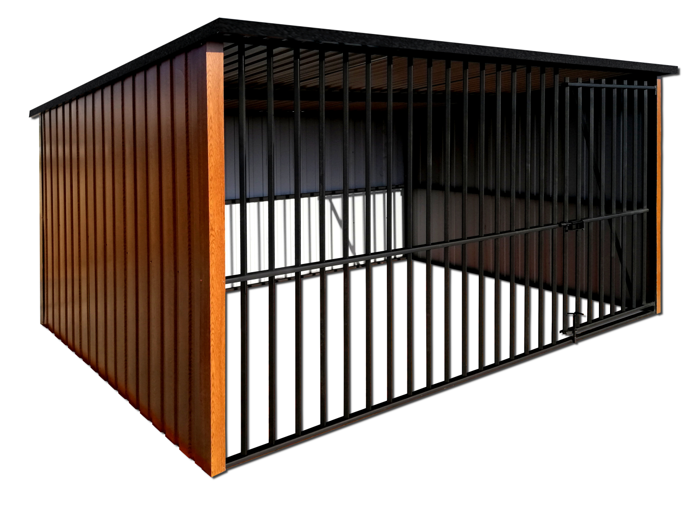 Oferowanym produktem jest kojec dla psa wykonany z czarnych profili, zawijanych-niezgrzewanych, wzbogacony w okucia blacharskie i ściany zabudowane blachą drewnopodobną!