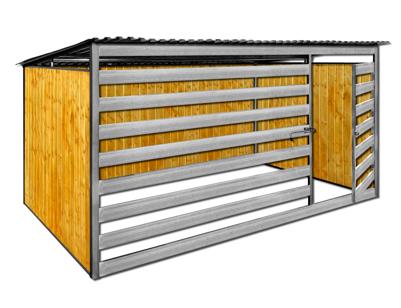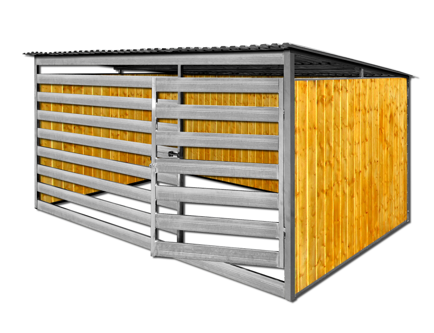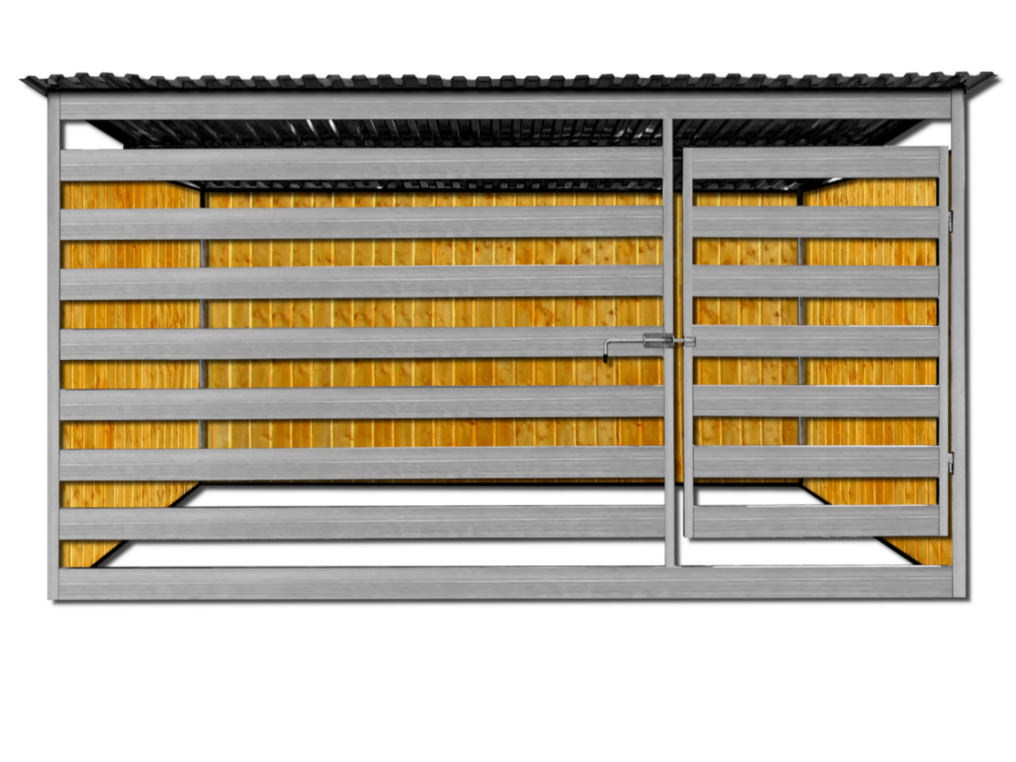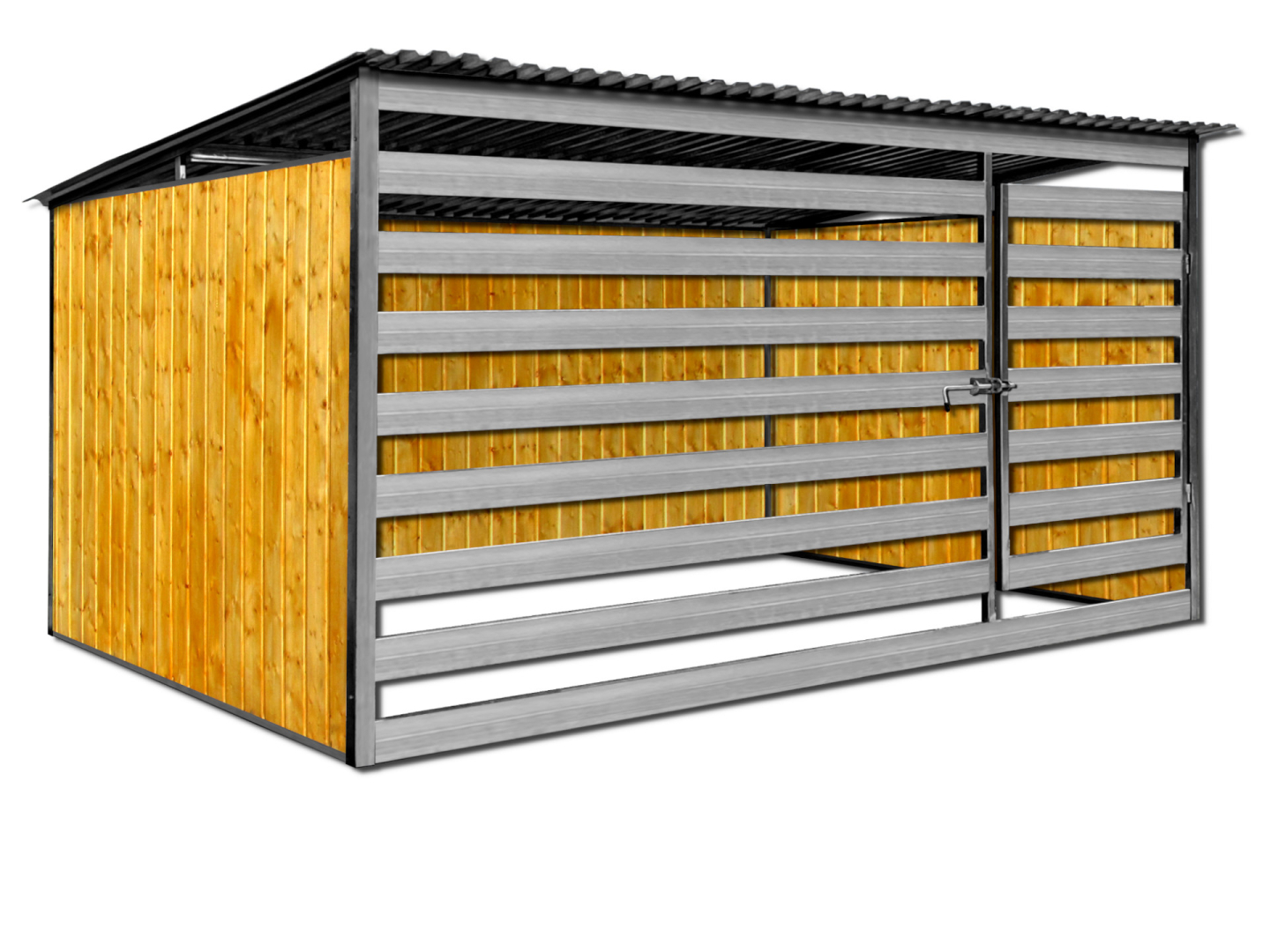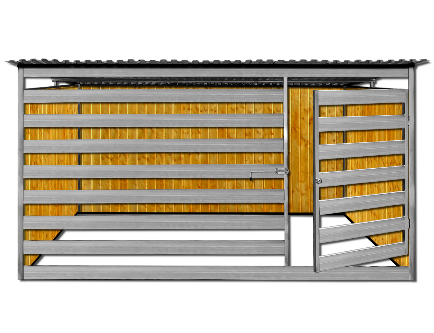 Oferowanym produktem jest wzmocniony kojec dla psa wykonany z paneli poziomych w ocynku, wzbogacony w ściany zabudowane drewnianymi deskami!