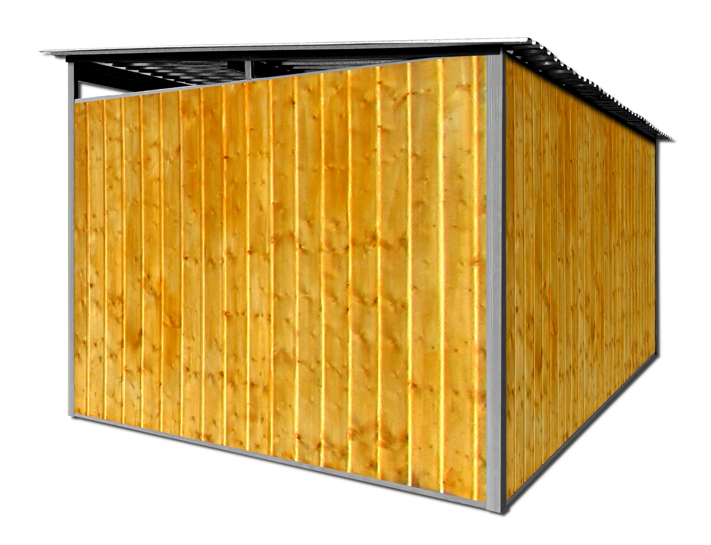 - ściany boczne i tylna zabudowane drewnianymi deskami.