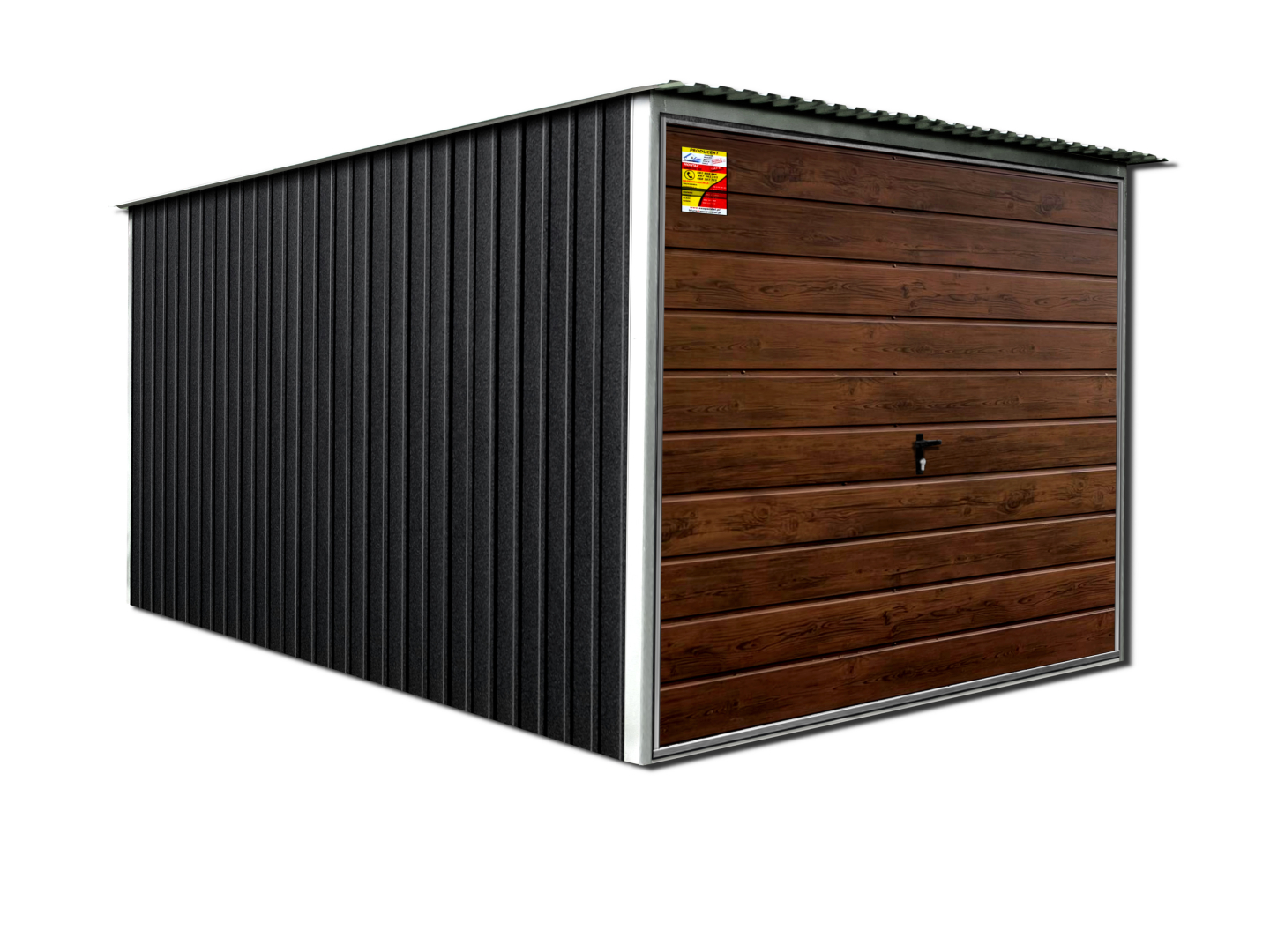 Garaż blaszany 8X6 LUX – Dwuspadowy dach, bramy uchylne, grafit mat