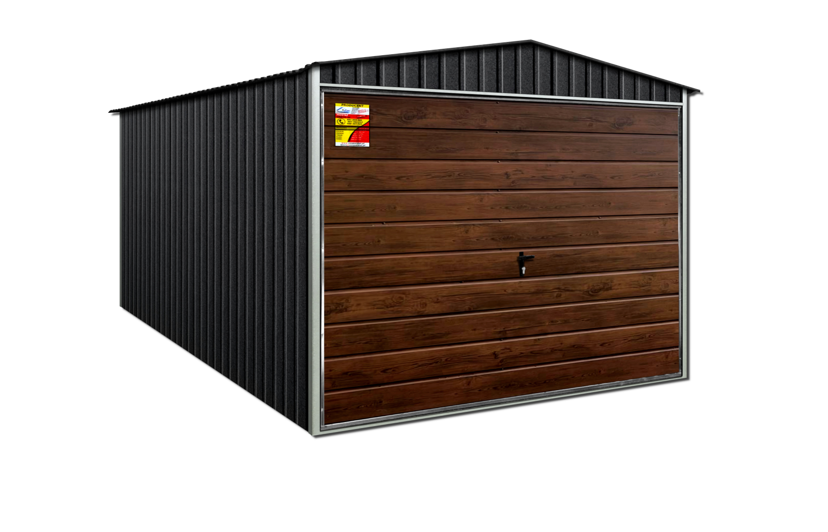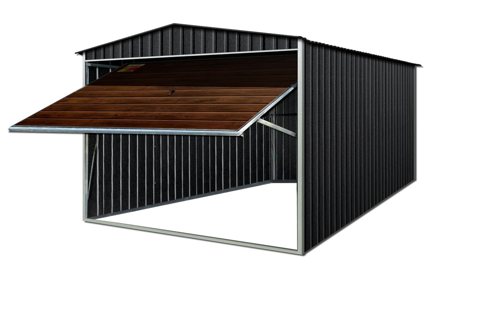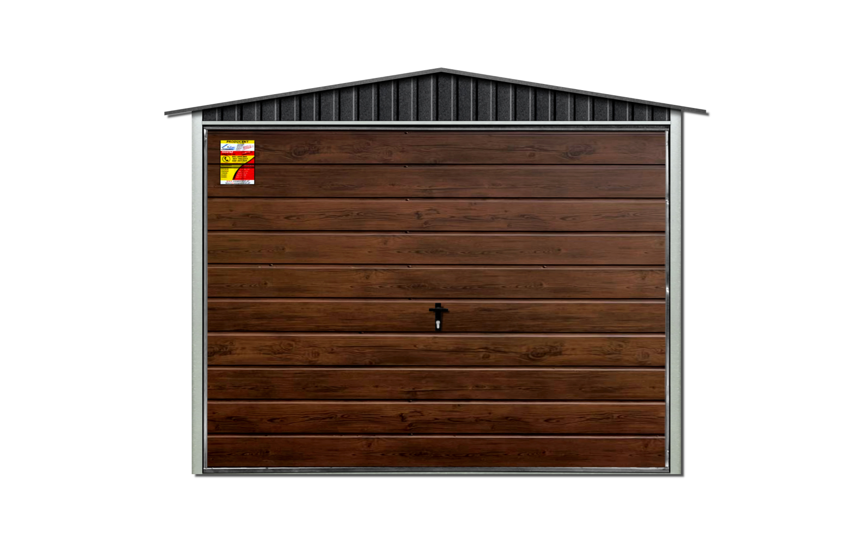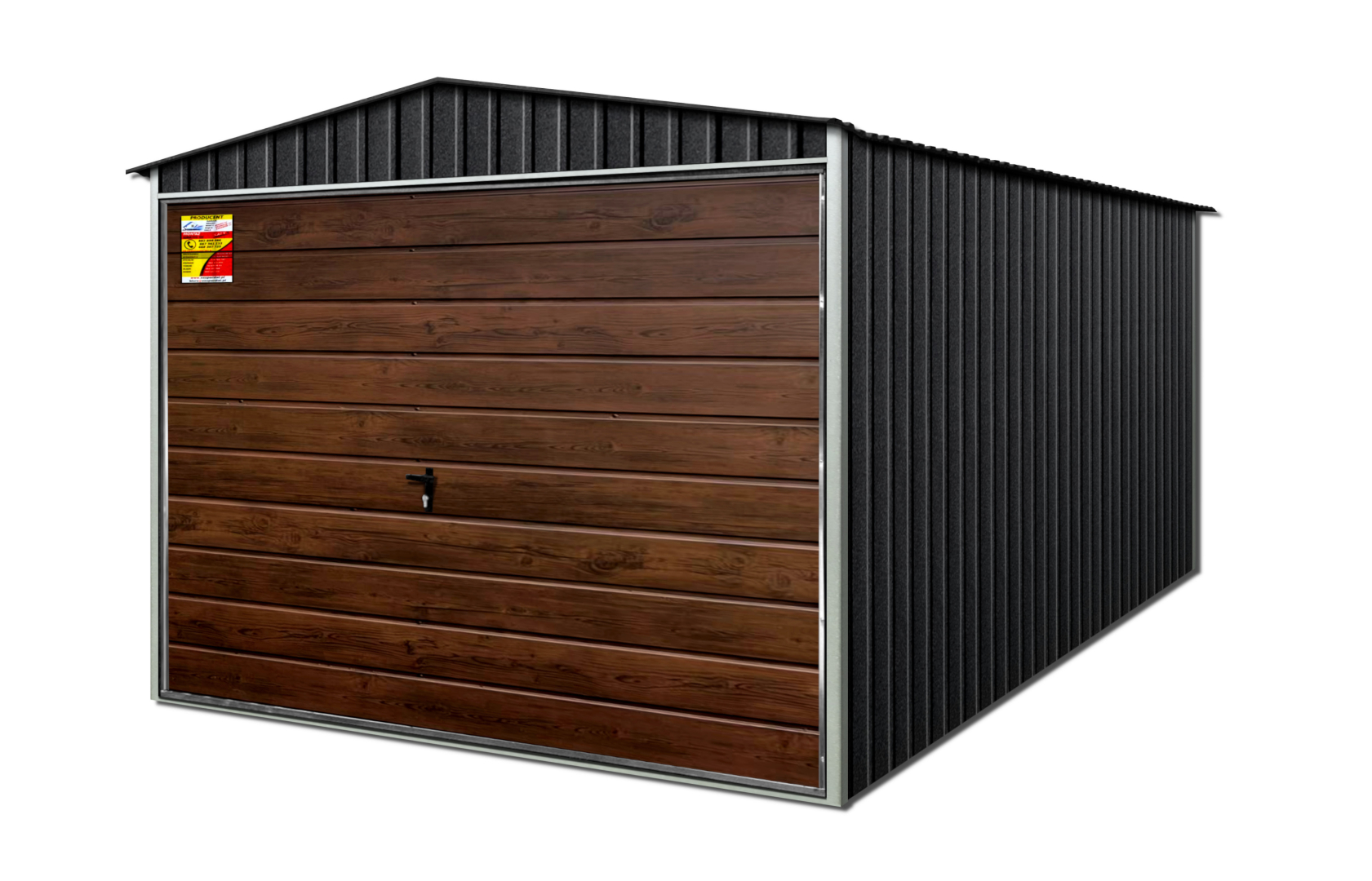 GARAŻ LUX 2X5 – DWUSPADOWY DACH, DREWNOPODOBNA BRAMA UCHYLNA, KONSTRUKCJA OCYNKOWANA