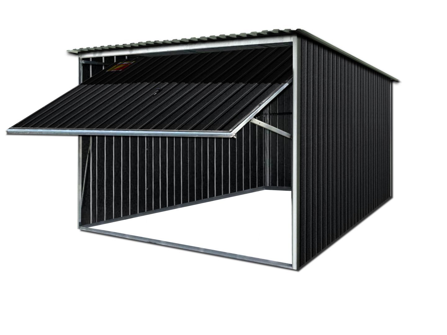Garaż blaszany 4X5 GRAFIT MAT – Spad dachu do tyłu, brama uchylna