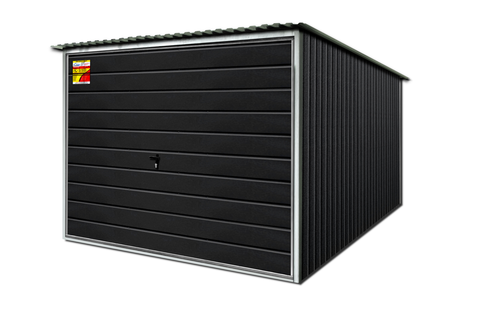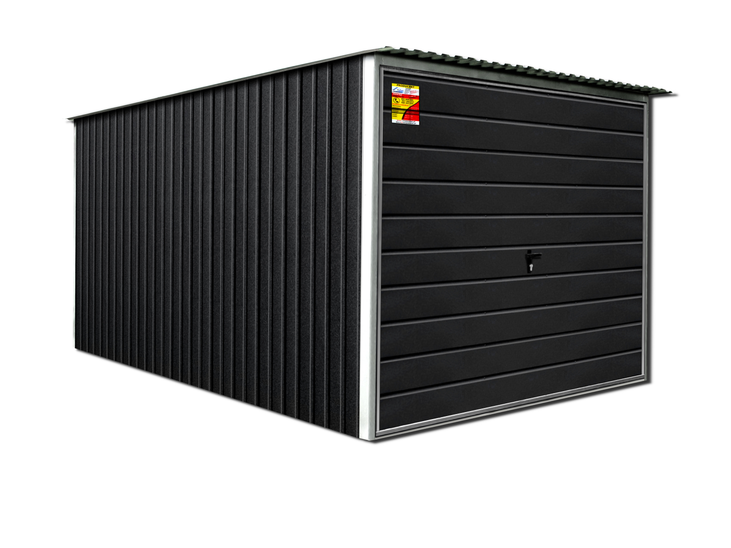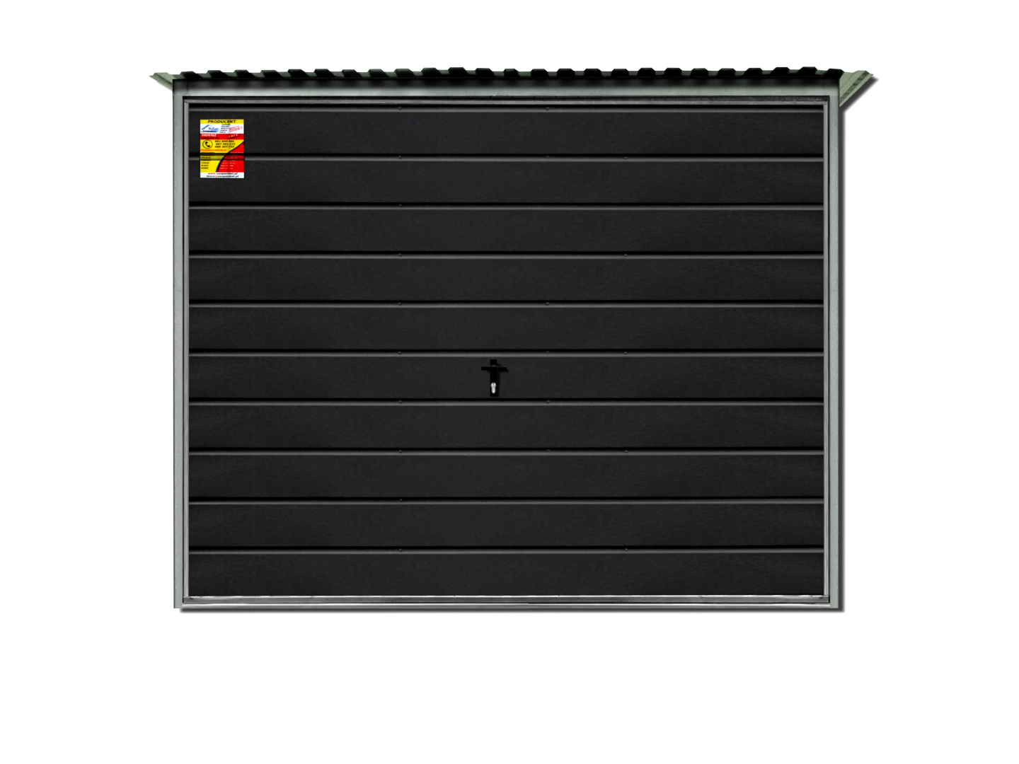 Garaż blaszany 2X3 LUX – Spad dachu do tyłu, brama uchylna, grafit mat