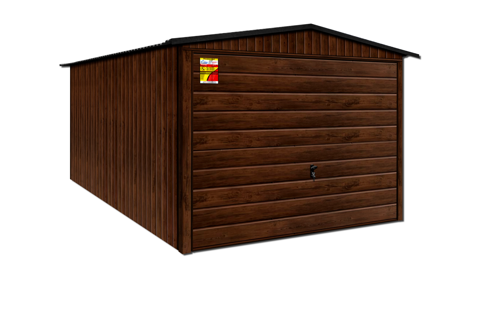 Garaż blaszany 2X5 LUX drewnopodobny – Dwuspadowy dach, brama uchylna