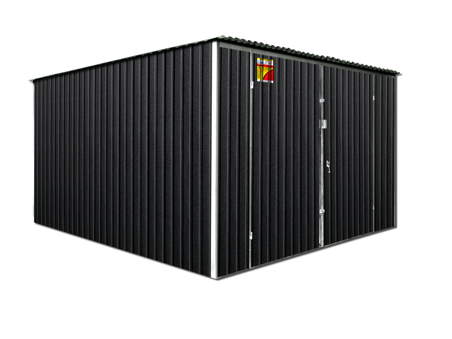 Garaż blaszany 3X6 GRAFIT MAT – Spad dachu do tyłu, brama dwuskrzydłowa