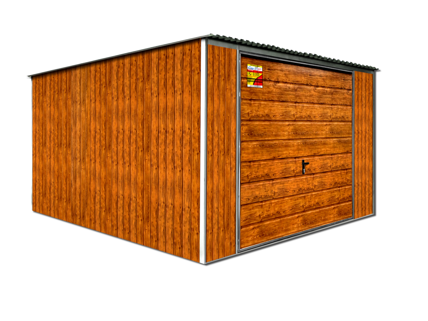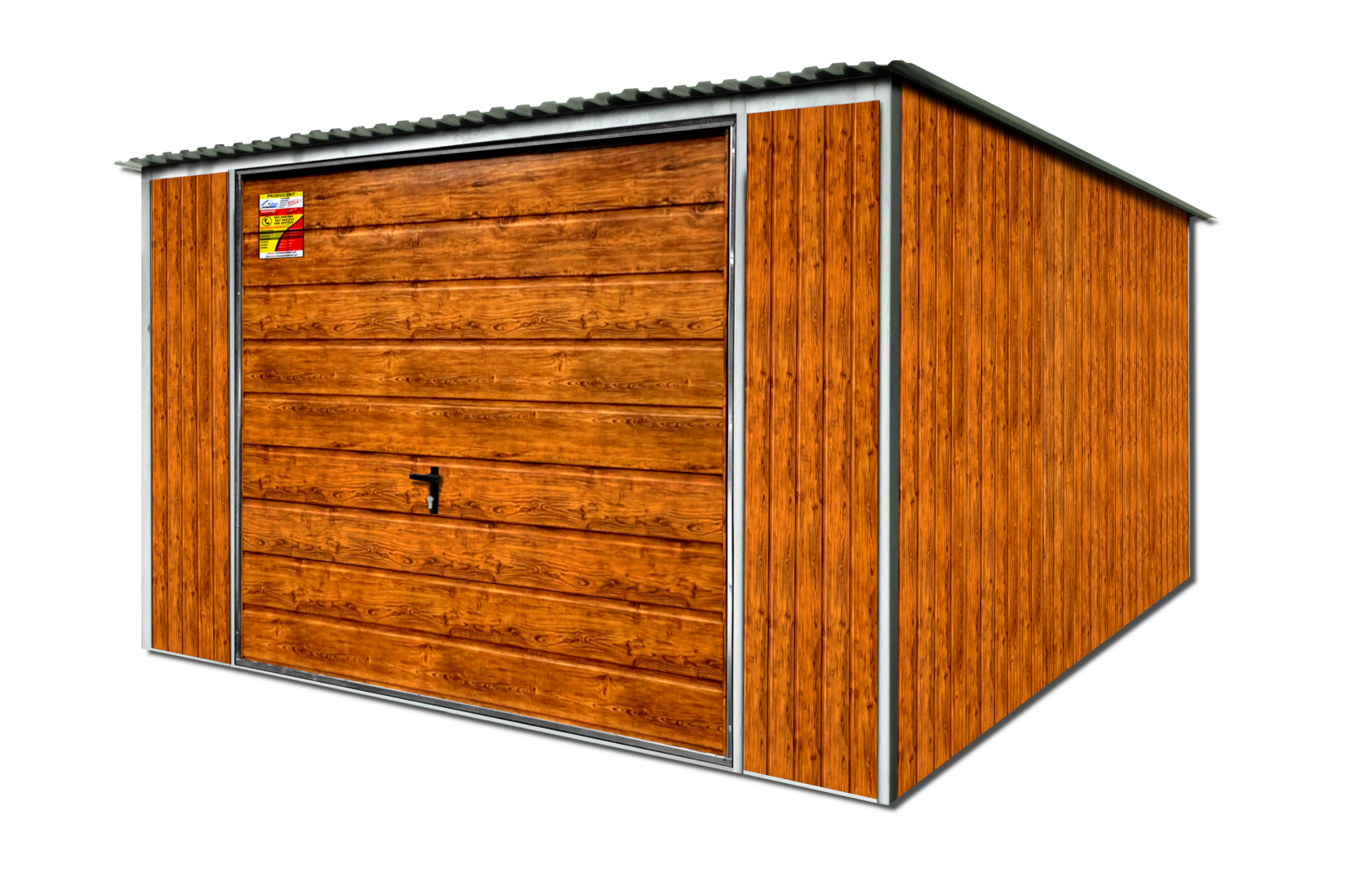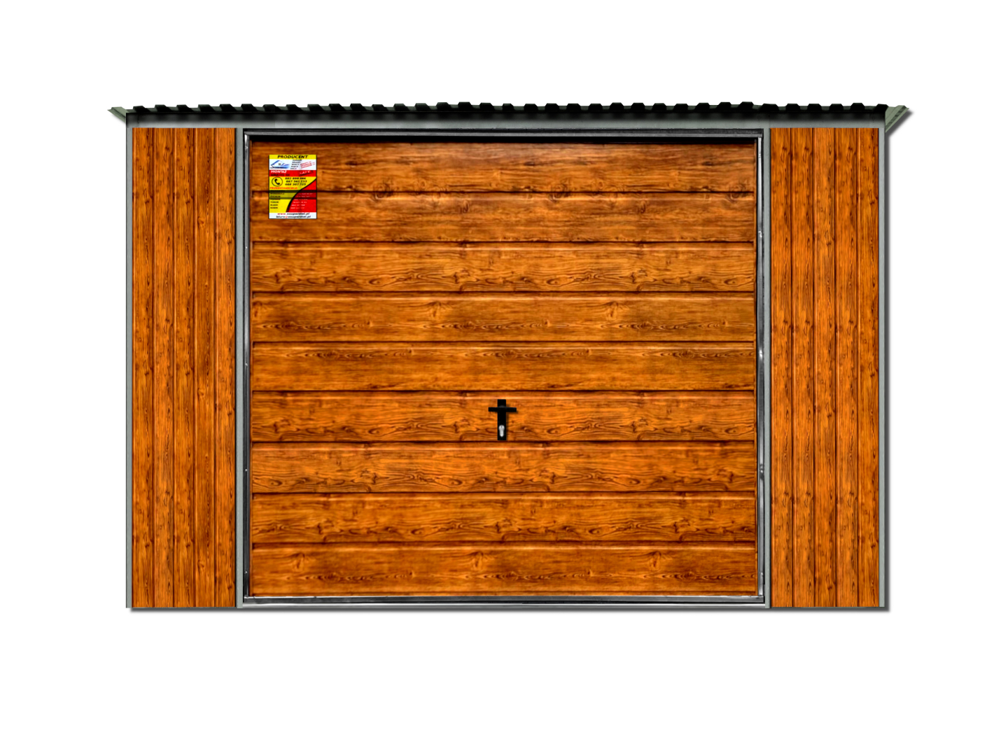 - ściany oraz brama pokryte blachą w kolorze drewnopodobnym - ZŁOTY DĄB