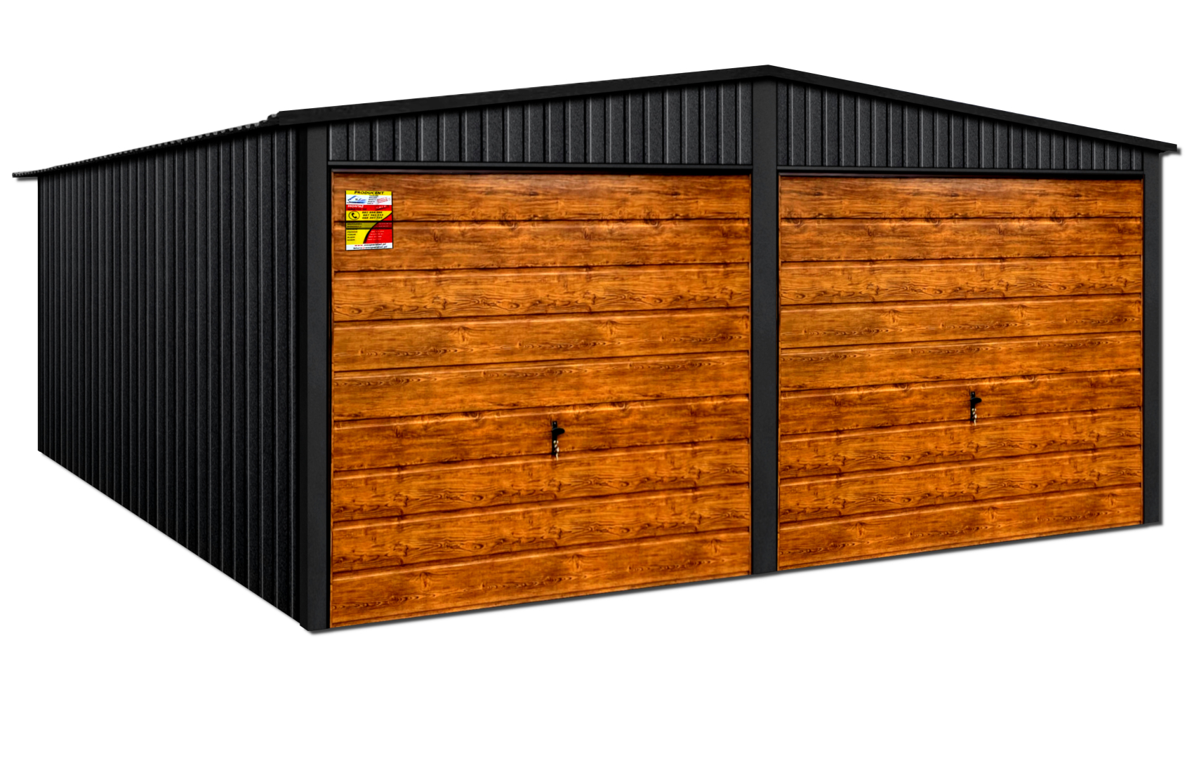 Garaż blaszany 7X8 LUX – Dwuspadowy dach, bramy uchylne, czarny mat