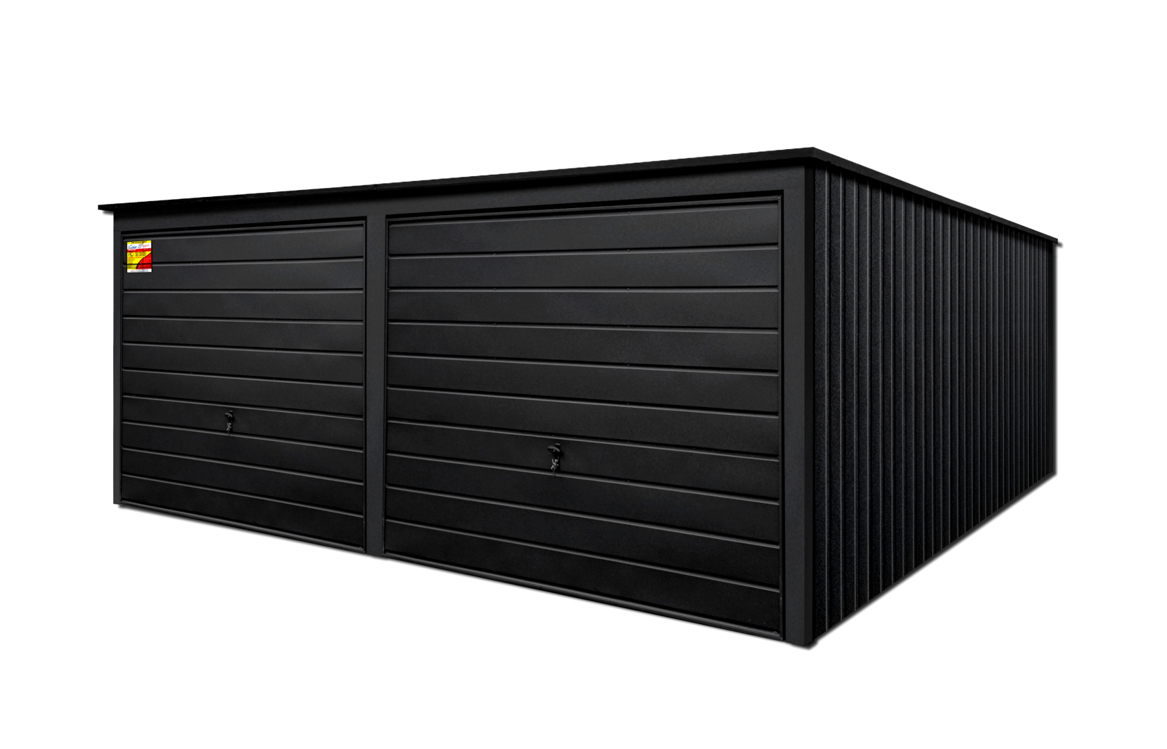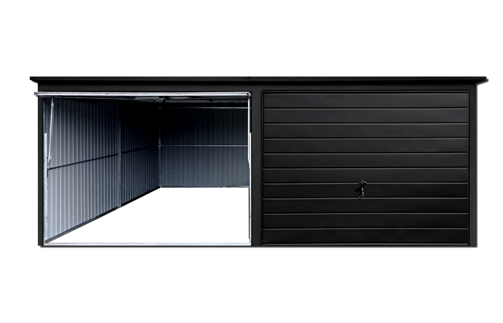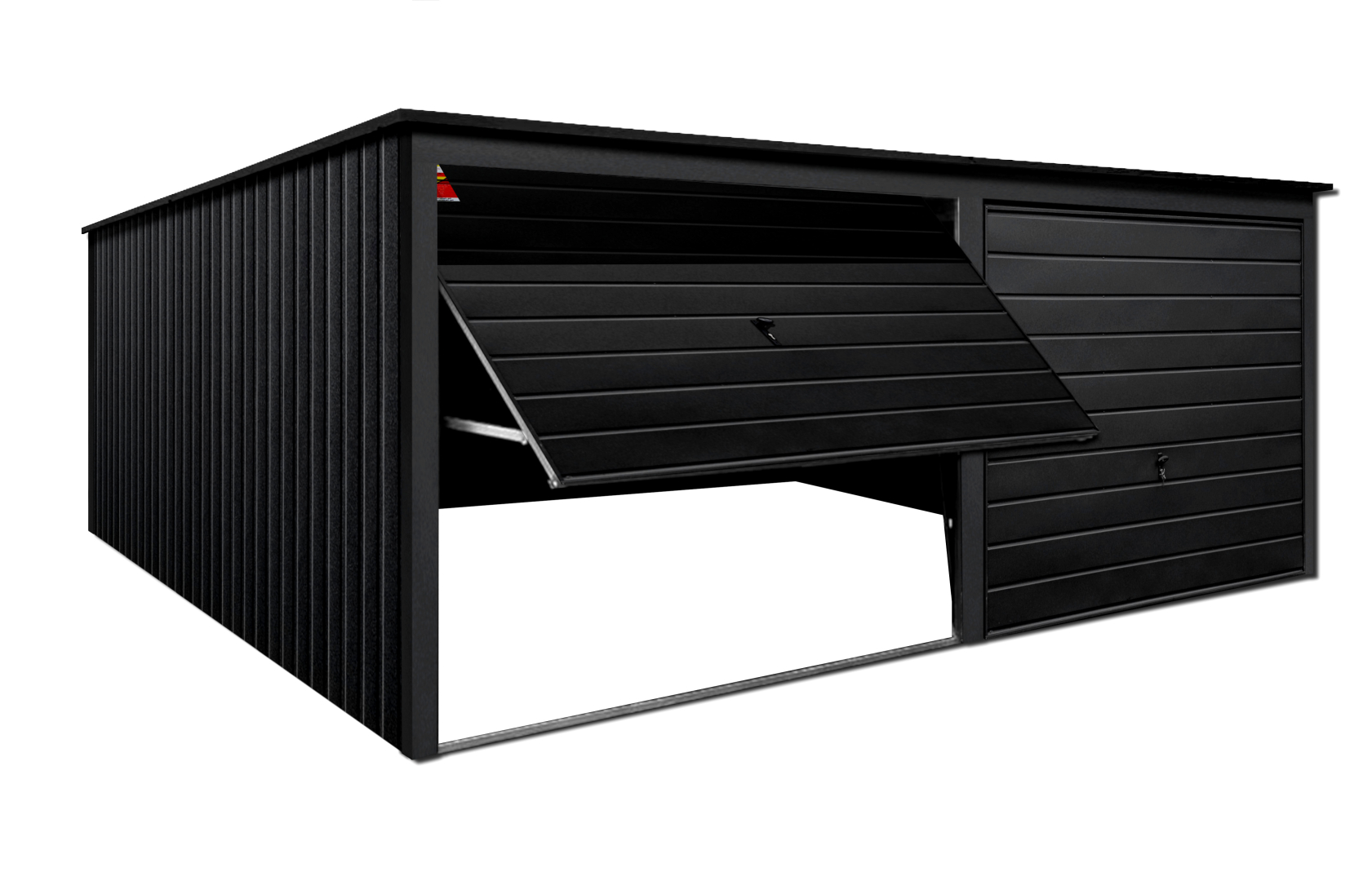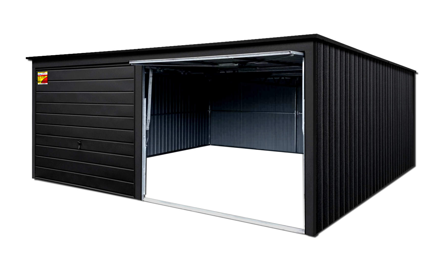 Garaż blaszany 4X7 LUX – Dwuspadowy dach, brama uchylna, czarny mat