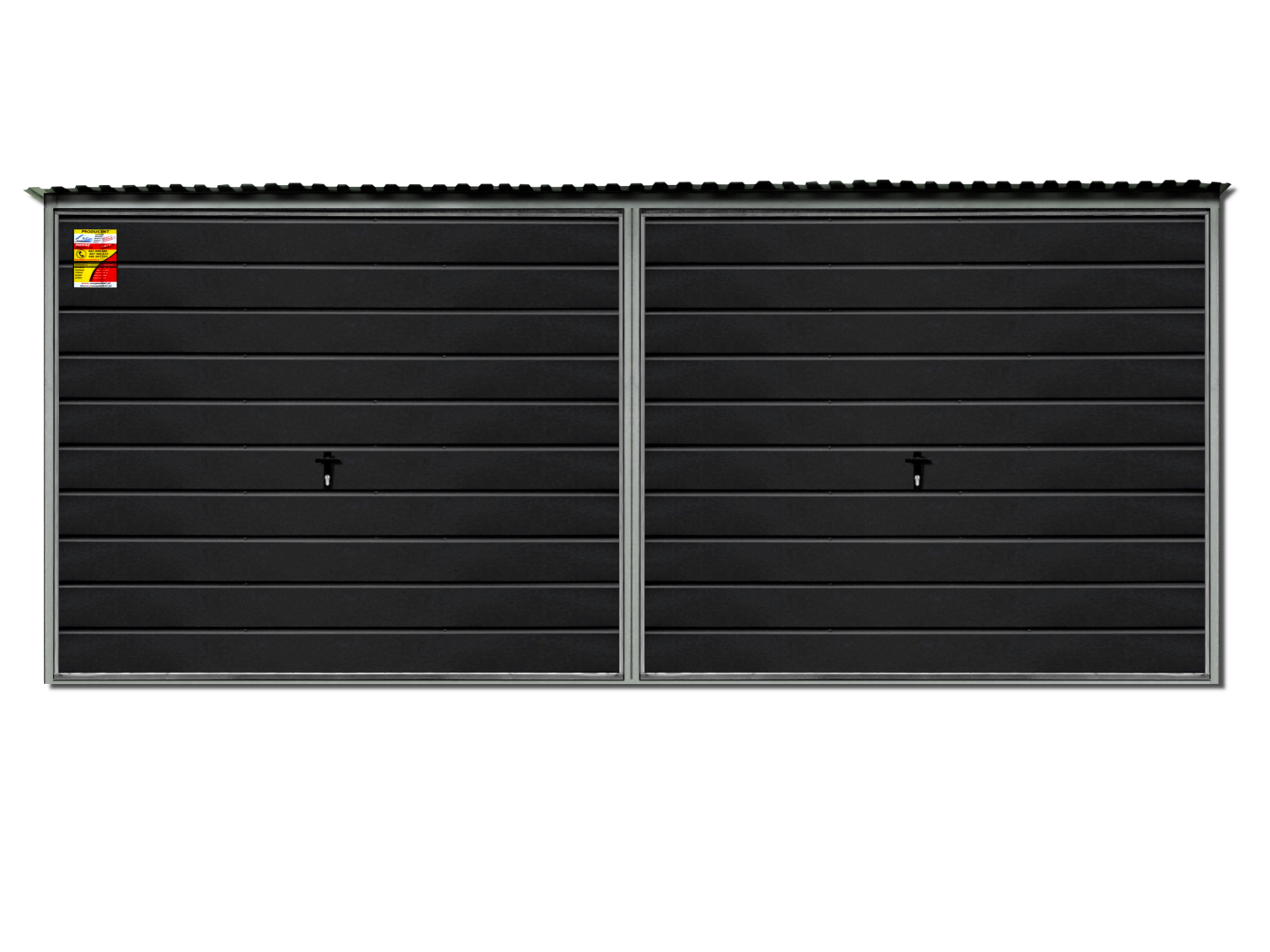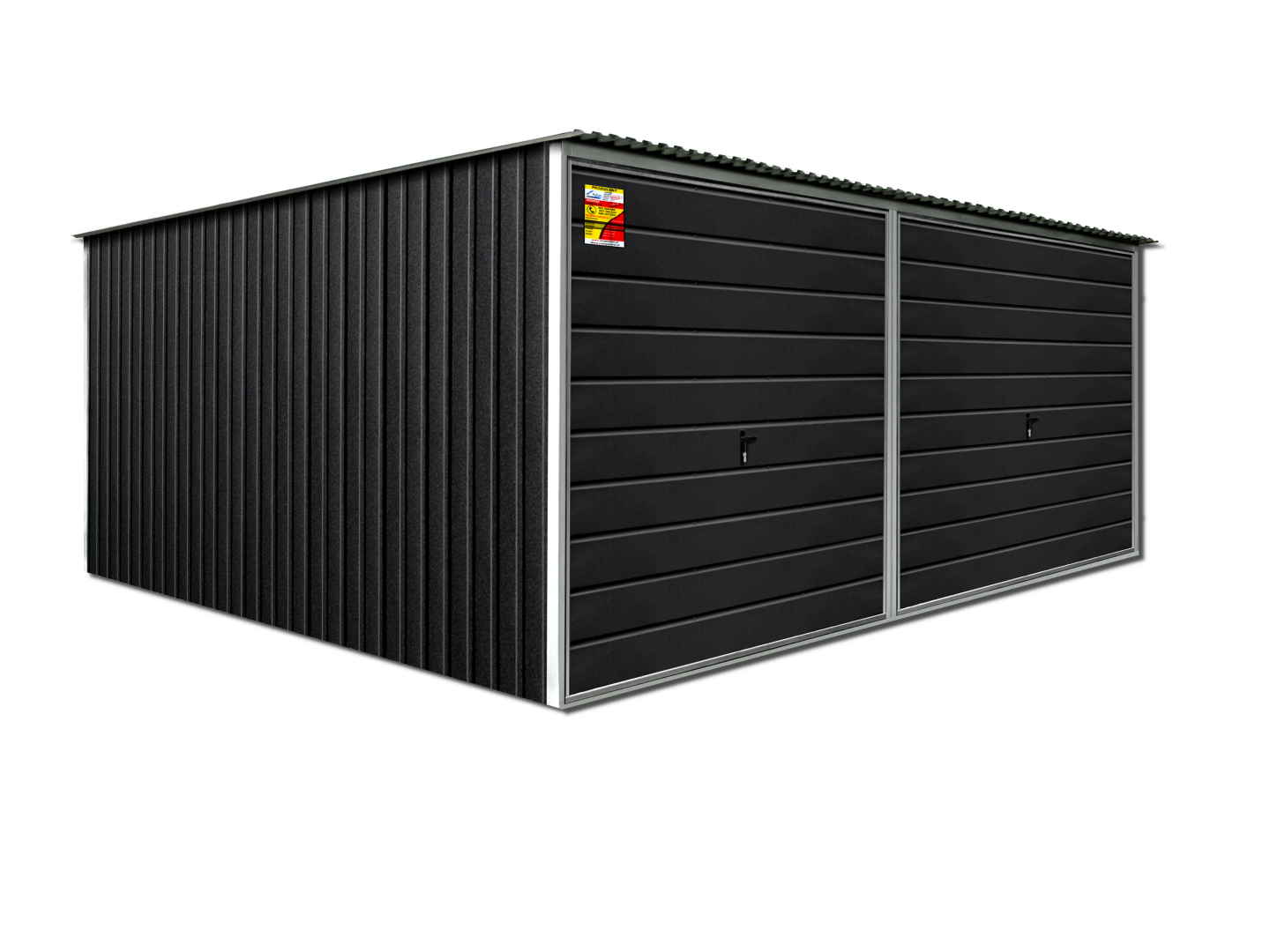 Garaż blaszany 6X6 LUX – Dwuspadowy dach, bramy uchylne, grafit mat