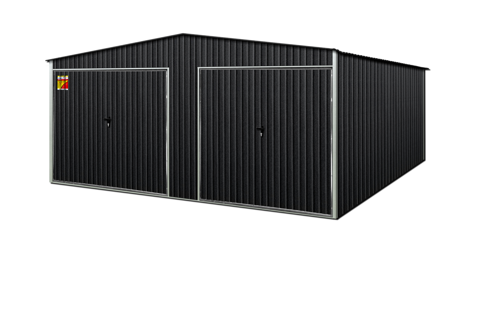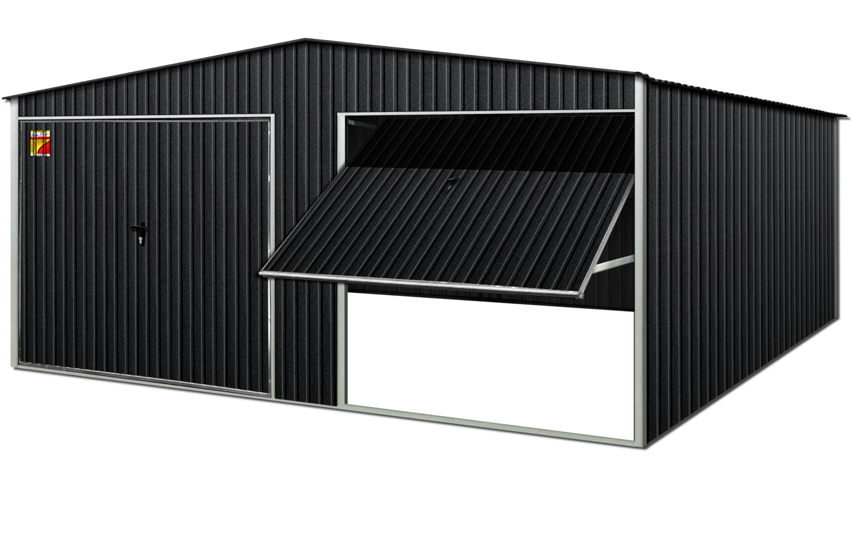 GRAFITOWY GARAŻ BLASZANY 7X6 – DWUSPADOWY DACH, BRAMY UCHYLNE, KONSTRUKCJA OCYNKOWANA
