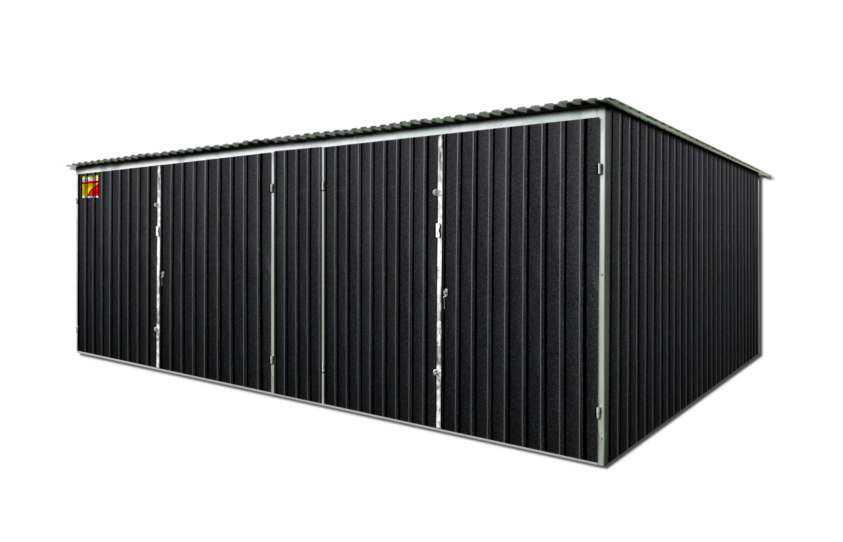 Garaż blaszany 7X7 GRAFIT MAT – Dwuspadowy dach, bramy dwuskrzydłowe