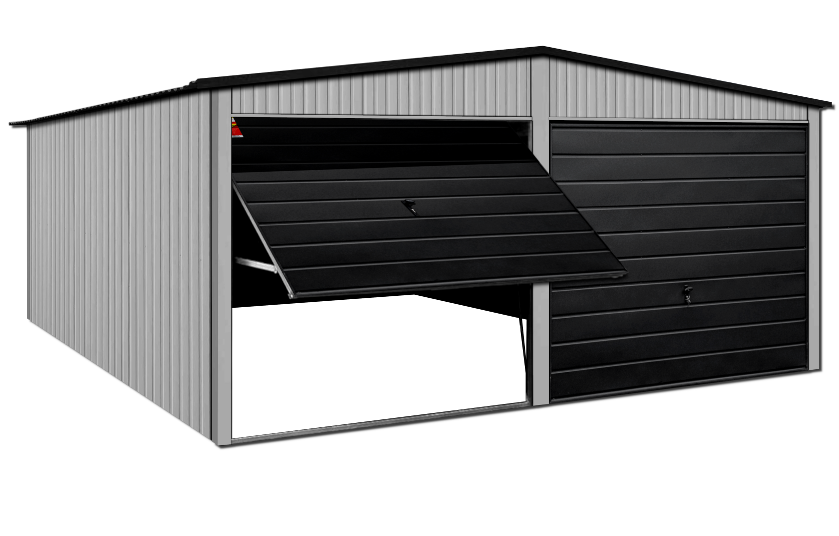 GARAŻ LUX 6X6 – DWUSPADOWY DACH, BRAMY UCHYLNE, OKUCIA BLACHARSKIE DACHU I NAROŻNIKÓW
