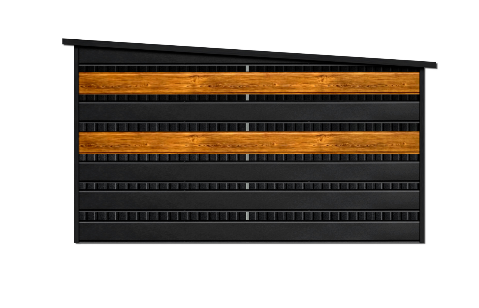 - panele światy w Systemie SMK w kolorze CZARNY MAT + 2 pasy paneli w kolorze drewnapodobnym SOSNA